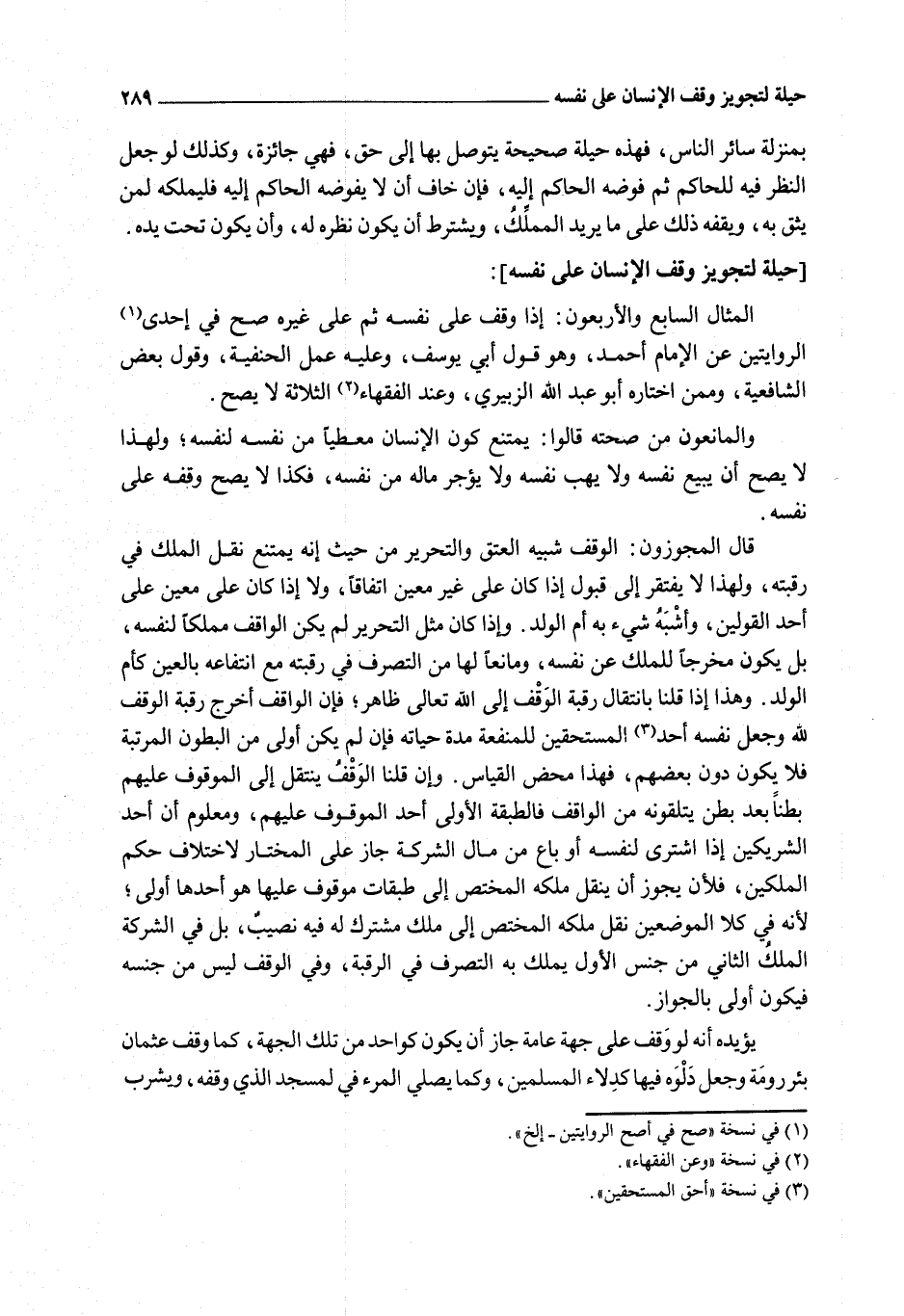 [الْمِثَالُ السَّابِعُ وَالْأَرْبَعُونَ الْحِيلَةُ لِتَجْوِيزِ وَقْفِ الْإِنْسَانِ عَلَى نَفْسِهِ]