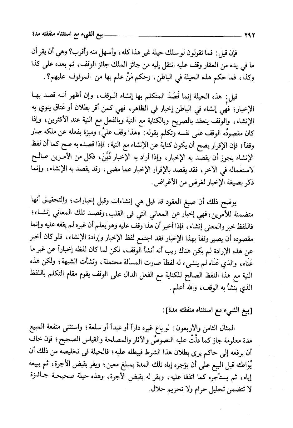 [الْمِثَالُ الثَّامِنُ وَالْأَرْبَعُونَ الْحِيلَةُ فِي بَيْعِ الشَّيْءِ مَعَ اسْتِثْنَاءِ مَنْفَعَتِهِ مُدَّةً]