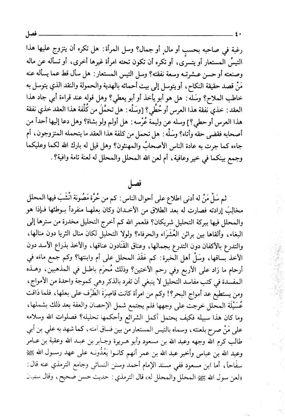 رَغْبَةٌ فِي صَاحِبِهِ بِحَسَبٍ أَوْ مَالٍ أَوْ جَمَالٍ؟ وَسَلْ الْمَرْأَةَ: هَلْ تَكْرَهُ أَنْ يَتَزَوَّجَ عَلَيْهَا هَذَا التَّيْسُ الْمُسْتَعَارُ أَوْ يَتَسَرَّى، أَوْ تَكْرَهُ أَنْ تَكُونَ تَحْتَهُ امْرَأَةٌ غَيْرُهَا أُخْرَى، أَوْ تَسْأَلُهُ عَنْ مَالِهِ وَصَنْعَتِهِ أَوْ حُسْنِ عِشْرَتِهِ وَسَعَةِ نَفَقَتِهِ؟ وَسَلْ التَّيْسَ الْمُسْتَعَارَ: هَلْ سَأَلَ قَطُّ عَمَّا يَسْأَلُهُ عَنْهُ مَنْ قَصَدَ حَقِيقَةَ النِّكَاحِ، أَوْ يَتَوَسَّلُ إلَى بَيْتِ أَحْمَائِهِ بِالْهَدِيَّةِ وَالْحُمُولَةِ وَالنَّقْدِ الَّذِي يَتَوَسَّلُ بِهِ خَاطِبُ الْمِلَاحِ؟ وَسَلْهُ: هَلْ هُوَ أَبُو يَأْخُذُ أَوْ أَبُو يُعْطِي؟ وَهَلْ قَوْلُهُ عِنْدَ قِرَاءَةِ أُبَيٍّ جَادَ هَذَا الْعَقْدَ: خُذِي نَفَقَةَ هَذَا الْعُرْسِ أَوْ حُطِّي؟