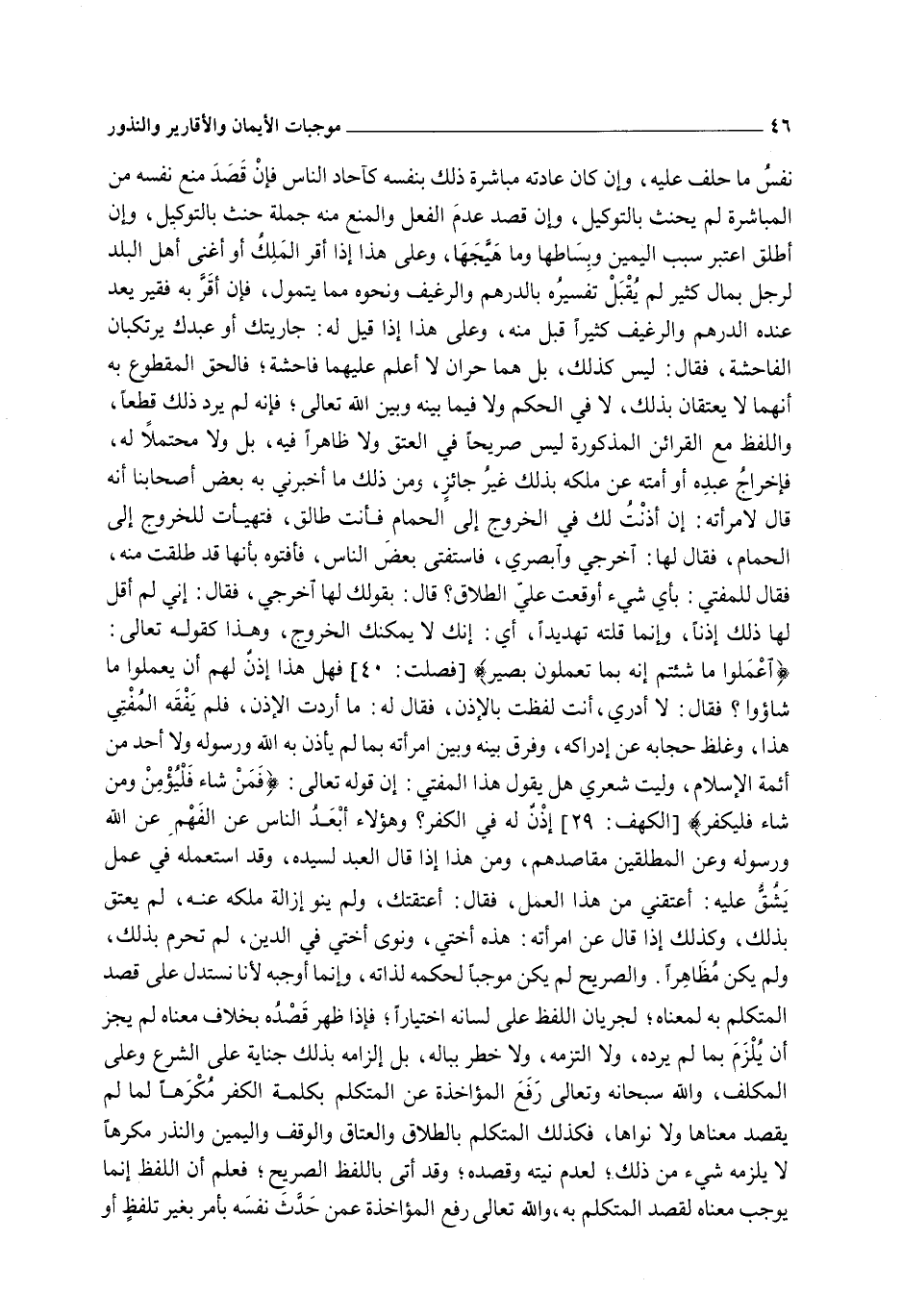 وَلَيْتَ شِعْرِي هَلْ يَقُولُ هَذَا الْمُفْتِي: إنَّ قَوْله تَعَالَى: {فَمَنْ شَاءَ فَلْيُؤْمِنْ وَمَنْ شَاءَ فَلْيَكْفُرْ} [الكهف: 29] إذْنٌ لَهُ فِي الْكُفْرِ؟ وَهَؤُلَاءِ أَبْعَدُ النَّاسِ عَنْ الْفَهْمِ عَنْ اللَّهِ وَرَسُولِهِ وَعَنْ الْمُطْلِقِينَ مَقَاصِدَهُمْ.