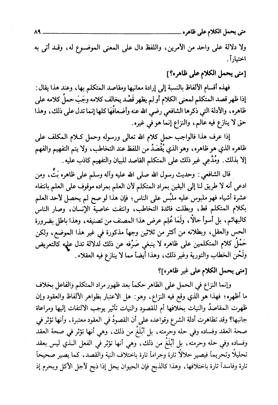 [مَتَى يُحْمَلُ الْكَلَامُ عَلَى ظَاهِرِهِ؟]