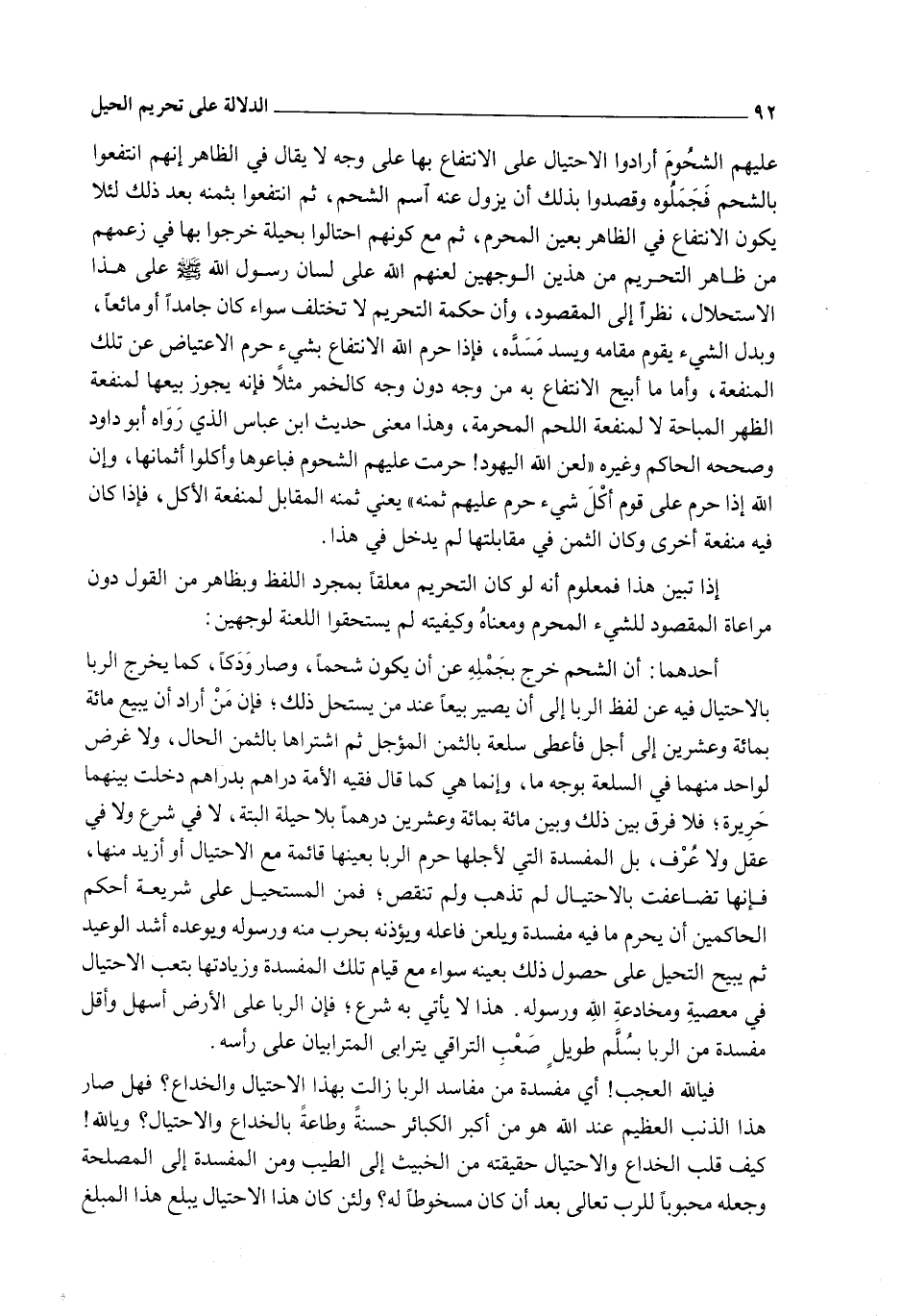 فَيَا لِلَّهِ الْعَجَبُ، أَيُّ مَفْسَدَةٍ مِنْ مَفَاسِدِ الرِّبَا زَالَتْ بِهَذَا الِاحْتِيَالِ وَالْخِدَاعِ؟ فَهَلْ صَارَ هَذَا الذَّنْبُ الْعَظِيمُ عِنْدَ اللَّهِ هُوَ مِنْ أَكْبَرِ الْكَبَائِرِ حَسَنَةً وَطَاعَةً بِالْخِدَاعِ وَالِاحْتِيَالِ؟ وَيَا لِلَّهِ، كَيْفَ قَلَبَ الْخِدَاعُ وَالِاحْتِيَالُ حَقِيقَتَهُ مِنْ الْخَبِيثِ إلَى الطَّيِّبِ وَمِنْ الْمَفْسَدَةِ إلَى الْمَصْلَحَةِ وَجَعَلَهُ مَحْبُوبًا لِلرَّبِّ تَعَالَى بَعْدَ أَنْ كَانَ مَسْخُوطًا لَهُ؟ وَلَئِنْ كَانَ هَذَا الِاحْتِيَالُ يَبْلُغُ هَذَا الْمَبْلَغَ