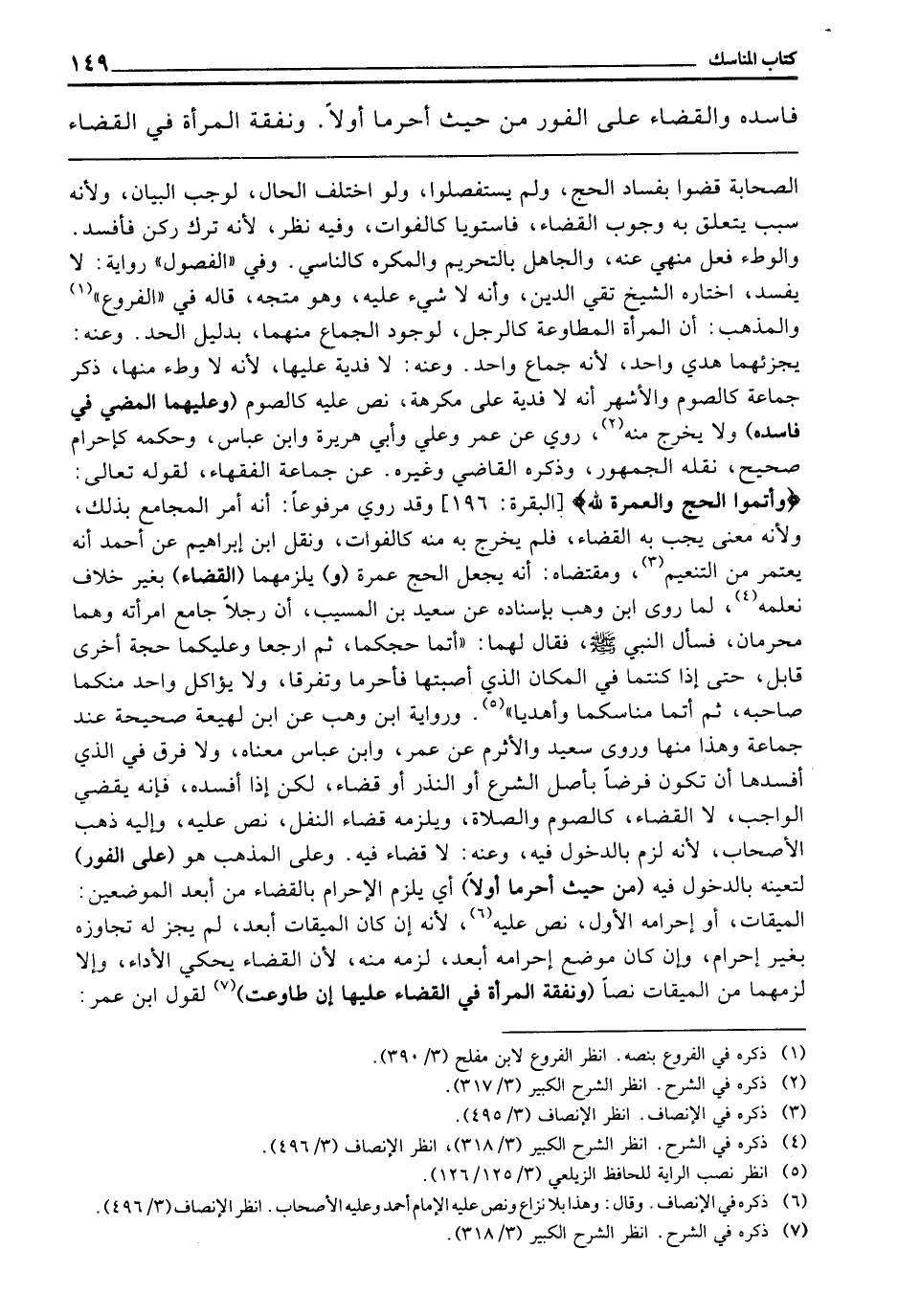 ـــــــــــــــــــــــــــــQالصَّحَابَةِ قَضَوْا بِفَسَادِ الْحَجِّ، وَلَمْ يَسْتَفْصِلُوا، وَلَوِ اخْتَلَفَ الْحَالُ لَوَجَبَ الْبَيَانُ، وَلِأَنَّهُ سَبَبٌ يَتَعَلَّقُ بِهِ وُجُوبُ الْقَضَاءِ فَاسْتَوَيَا كَالْفَوَاتِ، وَفِيهِ نَظَرٌ؛ لِأَنَّهُ تَرْكُ رُكْنٍ فَأُفْسِدَ، وَالْوَطْءُ فِعْلٌ مَنْهِيٌّ عَنْهُ، وَالْجَاهِلُ بِالتَّحْرِيمِ، وَالْمُكْرَهُ كَالنَّاسِي. وَفِي " الْفُصُولِ " رِوَايَةٌ " لَا يُفْسِدُ " اخْتَارَهُ الشَّيْخُ تَقِيُّ الدِّينِ، وَأَنَّهُ لَا شَيْءَ عَلَيْهِ، وَهُوَ مُتَّجَهٌ قَالَهُ فِي " الْفُرُوعِ " وَالْمَذْهَبُ: أَنَّ الْمَرْأَةَ الْمُطَاوِعَةَ كَالرَّجُلِ لِوُجُودِ الْجِمَاعِ مِنْهُمَا، بِدَلِيلِ الْحَدِّ، وَعَنْهُ: يُجْزِئُهُمَا هَدْيٌ وَاحِدٌ؛ لِأَنَّهُ جِمَاعٌ وَاحِدٌ، وَعَنْهُ: لَا فِدْيَةَ عَلَيْهَا؛ لِأَنَّهُ لَا وَطْءَ مِنْهَا، ذَكَرَ جَمَاعَةٌ كَالصَّوْمِ، وَالْأَشْهَرُ أَنَّهُ لَا فِدْيَةَ عَلَى مُكْرَهَةٍ، نَصَّ عَلَيْهِ، كَالصَّوْمِ (وَعَلَيْهِمَا الْمُضِيُّ فِي فَاسِدِهِ) وَلَا يَخْرُجُ مِنْهُ رُوِيَ عَنْ عُمَرَ، وَعَلِيٍّ وَأَبِي هُرَيْرَةَ وَابْنِ عَبَّاسٍ، وَحُكْمُهُ كَإِحْرَامٍ صَحِيحٍ نَقَلَهُ الْجُمْهُورُ، وَذَكَرَهُ الْقَاضِي وَغَيْرُهُ عَنْ جَمَاعَةِ الْفُقَهَاءِ لِقَوْلِهِ - تَعَالَى - {وَأَتِمُّوا الْحَجَّ وَالْعُمْرَةَ لِلَّهِ} [البقرة: 196] وَقَدْ رُوِيَ مَرْفُوعًا أَنَّهُ أَمَرَ الْمُجَامِعَ بِذَلِكَ، وَلِأَنَّهُ مَعْنَى يَجِبُ بِهِ الْقَضَاءُ فَلَمْ يَخْرُجْ بِهِ مِنْهُ كَالْفَوَاتِ، وَنَقَلَ ابْنُ إِبْرَاهِيمَ عَنْ أَحْمَدَ أَنَّهُ يَعْتَمِرُ مِنَ التَّنْعِيمِ، وَمُقْتَضَاهُ أَنَّهُ يَجْعَلُ الْحَجَّ عُمْرَةً، (وَ) يَلْزَمُهُمَا (الْقَضَاءُ) بِغَيْرِ خِلَافٍ نَعْلَمُهُ، لِمَا رَوَى ابْنُ وَهْبٍ بِإِسْنَادِهِ عَنْ سَعِيدِ بْنِ الْمُسَيِّبِ «أَنَّ رَجُلًا جَامَعَ امْرَأَتَهُ، وَهُمَا مُحْرِمَانِ فَسَأَلَ النَّبِيَّ - صَلَّى اللَّهُ عَلَيْهِ وَسَلَّمَ - فَقَالَ لَهُمَا: أَتِمَّا حَجَّكُمَا ثُمَّ ارْجِعَا وَعَلَيْكُمَا حَجَّةٌ أُخْرَى قَابِلَ حَتَّى إِذَا كُنْتُمَا فِي الْمَكَانِ الَّذِي أَصَبْتَهَا فَأَحْرِمَا وَتَفَرَّقَا وَلَا يُؤَاكِلْ وَاحِدٌ مِنْكُمَا صَاحِبَهُ، ثُمَّ أَتِمَّا مَنَاسِكَكُمَا وَأَهْدِيَا» وَرِوَايَةُ ابْنِ وَهْبٍ عَنِ ابْنِ لَهِيعَةَ صَحِيحَةٌ عِنْدَ جَمَاعَةٍ وَهَذَا مِنْهَا، وَرَوَى سَعِيدٌ وَالْأَثْرَمُ عَنْ عُمَرَ وَابْنِ عَبَّاسٍ مَعْنَاهُ، وَلَا فَرْقَ فِي الَّذِي أَفْسَدَهَا أَنْ تَكُونَ فَرْضًا بِأَصْلِ الشَّرْعِ أَوِ النَّذْرِ أَوْ قَضَاءً، لَكِنْ إِذَا أَفْسَدَهُ، فَإِنَّهُ يَقْضِي الْوَاجِبَ، لَا الْقَضَاءَ كَالصَّوْمِ وَالصَّلَاةِ، وَيَلْزَمُهُ قَضَاءُ النَّفْلِ، نَصَّ عَلَيْهِ، وَإِلَيْهِ ذَهَبَ الْأَصْحَابُ؛ لِأَنَّهُ لَزِمَ بِالدُّخُولِ فِيهِ، وَعَنْهُ: لَا قَضَاءَ فِيهِ. وَعَلَى الْمَذْهَبِ هُوَ (عَلَى الْفَوْرِ) لِتَعَيُّنِهِ بِالدُّخُولِ فِيهِ (مِنْ حَيْثُ أَحْرَمَا أَوَّلًا) أَيْ: يَلْزَمُ الْإِحْرَامُ بِالْقَضَاءِ مِنْ أَبْعَدِ الْمَوْضِعَيْنِ الْمِيقَاتِ أَوْ إِحْرَامِهِ الْأَوَّلِ، نَصَّ عَلَيْهِ؛ لِأَنَّهُ إِنْ كَانَ الْمِيقَاتُ أَبْعَدَ لَمْ يَجُزْ لَهُ تَجَاوُزُهُ بِغَيْرِ إِحْرَامٍ، وَإِنْ كَانَ مَوْضِعُ إِحْرَامِهِ أَبْعَدَ لَزِمَهُ مِنْهُ؛ لِأَنَّ الْقَضَاءَ يَحْكِي الْأَدَاءَ، وَإِلَّا لَزِمَهُمَا مِنَ الْمِيقَاتِ نصا، (وَنَفَقَةُ الْمَرْأَةِ فِي الْقَضَاءِ عَلَيْهَا إِنْ طَاوَعَتْ) لِقَوْلِ ابْنِ عُمَرَ: