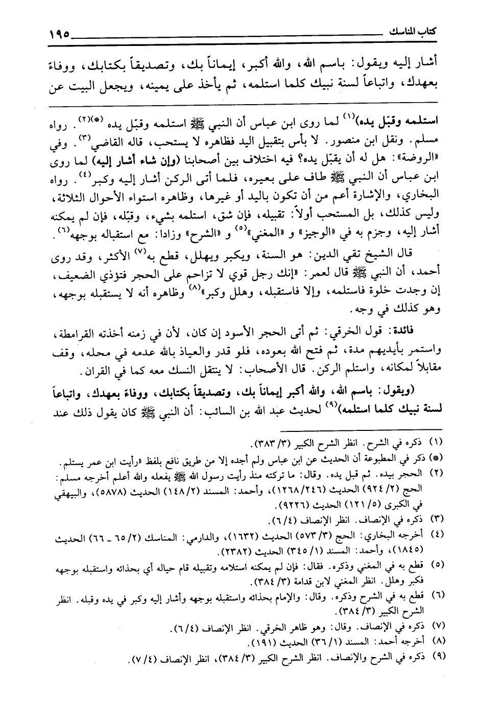 ـــــــــــــــــــــــــــــQاسْتَلَمَهُ وَقَبَّلَ يَدَهُ) لِمَا رَوَى ابْنُ عَبَّاسٍ «أَنَّ النَّبِيَّ - صَلَّى اللَّهُ عَلَيْهِ وَسَلَّمَ - اسْتَلَمَهُ وَقَبَّلَ يَدَهُ» . رَوَاهُ مُسْلِمٌ، وَنَقَلَ ابْنُ مَنْصُورٍ: لَا بَأْسَ بِتَقْبِيلِ الْيَدِ فَظَاهِرُهُ لَا يُسْتَحَبُّ قَالَهُ الْقَاضِي، وَفِي " الرَّوْضَةِ ": هَلْ لَهُ أَنْ يُقَبِّلَ يَدَهُ؛ فِيهِ اخْتِلَافٌ بَيْنَ أَصْحَابِنَا، (وَإِنْ شَاءَ أَشَارَ إِلَيْهِ) لِمَا رَوَى ابْنُ عَبَّاسٍ «أَنَّ النَّبِيَّ - صَلَّى اللَّهُ عَلَيْهِ وَسَلَّمَ - طَافَ عَلَى بَعِيرِهِ فَلَمَّا أَتَى الرُّكْنَ أَشَارَ إِلَيْهِ، وَكَبَّرَ» . رَوَاهُ الْبُخَارِيُّ، وَالْإِشَارَةُ أَعَمُّ مِنْ أَنْ تَكُونَ بِالْيَدِ أَوْ غَيْرِهَا. وَظَاهِرُهُ اسْتِوَاءُ الْأَحْوَالِ الثَّلَاثَةِ، وَلَيْسَ كَذَلِكَ بَلِ الْمُسْتَحَبُّ أَوَّلًا: تَقْبِيلُهُ فَإِنْ شَقَّ اسْتَلَمَهُ بِشَيْءٍ، وَقَبَّلَهُ فَإِنْ لَمْ يُمْكِنْهُ أَشَارَ إِلَيْهِ، وَجَزَمَ بِهِ فِي " الْوَجِيزِ " وَ " الْمُغْنِي " وَ " الشَّرْحِ " وَزَادَا: مَعَ اسْتِقْبَالِهِ بِوَجْهِهِ.