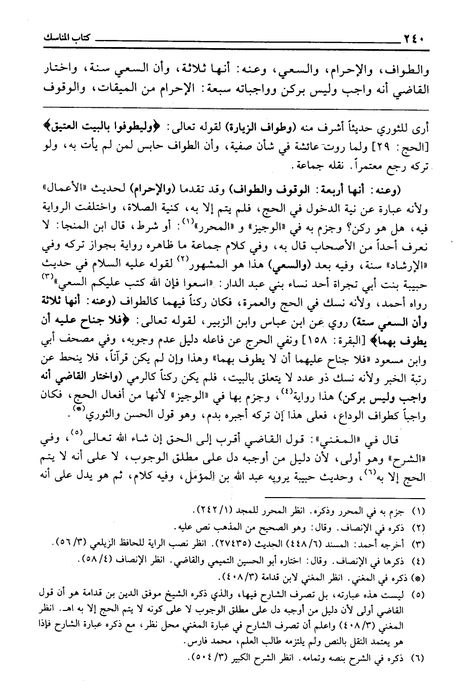 ـــــــــــــــــــــــــــــQأَرَى لِلثَّوْرِيِّ حَدِيثًا أَشْرَفَ مِنْهُ (وَطَوَافُ الزِّيَارَةِ) لِقَوْلِهِ - تَعَالَى - {وَلْيَطَّوَّفُوا بِالْبَيْتِ الْعَتِيقِ} [الحج: 29] وَلِمَا رَوَتْ عَائِشَةُ فِي شَأْنِ صَفِيَّةَ، وَأَنَّ الطَّوَافَ حَابِسٌ لِمَنْ لَمْ يَأْتِ بِهِ، وَلَوْ تَرَكَهُ رَجَعَ مُعْتَمِرًا، نَقَلَهُ جَمَاعَةٌ.