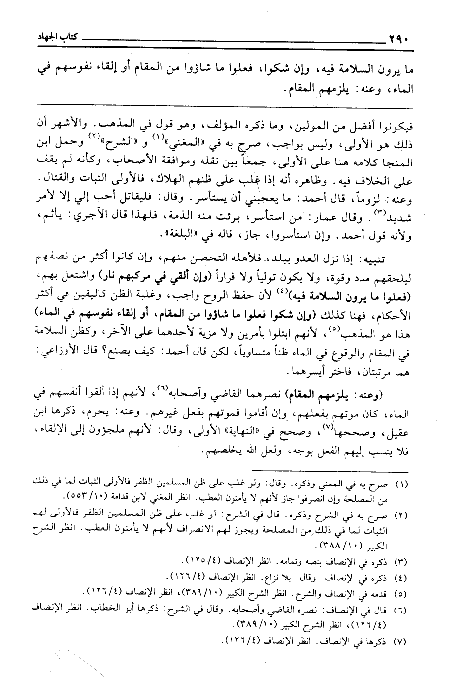 ـــــــــــــــــــــــــــــQفَيَكُونُوا أَفْضَلَ مِنَ الْمُوَلِّينَ. وَمَا ذَكَرَهُ الْمُؤَلِّفُ وهُوَ قَوْلٌ فِي الْمَذْهَبِ، وَالْأَشْهَرُ أَنَّ ذَلِكَ هُوَ الْأَوْلَى، وَلَيْسَ بِوَاجِبٍ، صَرَّحَ بِهِ فِي " الْمُغْنِي " وَ " الشَّرْحِ " وَحَمَلَ ابْنُ الْمُنَجَّا كَلَامَهُ هُنَا عَلَى الْأَوْلَى، جَمْعًا بَيْنَ نَقْلِهِ وَمُوَافَقَةِ الْأَصْحَابِ، وَكَأَنَّهُ لَمْ يَقِفْ عَلَى الْخِلَافِ فِيهِ. وَظَاهِرُهُ أَنَّهُ إِذَا غَلَبَ عَلَى ظَنِّهِمُ الْهَلَاكُ فَالْأَوْلَى الثَّبَاتُ وَالْقِتَالُ. وَعَنْهُ: لُزُومًا، قَالَ أَحْمَدُ: مَا يُعْجِبُنِي أَنْ يَسْتَأْسِرَ. وَقَالَ: فَلْيُقَاتِلْ أَحَبُّ إِلَيَّ إِلَّا لِأَمْرٍ شَدِيدٍ. وَقَالَ عَمَّارٌ: مَنِ اسْتَأْسَرَ بَرِئَتْ مِنْهُ الذِّمَّةُ، فَلِهَذَا قَالَ الْآجُرِّيُّ: يَأْثَمُ، وَلِأَنَّهُ قَوْلُ أَحْمَدَ، وَإِنِ اسْتَأْسَرُوا جَازَ. قَالَهُ فِي " الْبُلْغَةِ ".