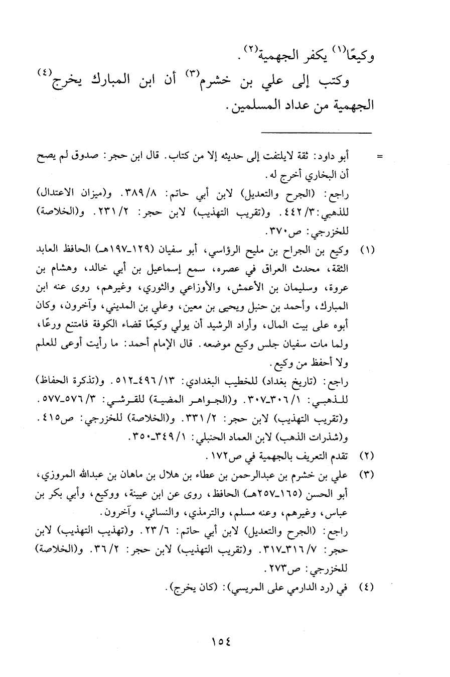 وكيعًا يكفر الجهمية وكتب إلى علي بن خشرم أن ابن المبارك يخرج الجهمية من عداد المسلمين