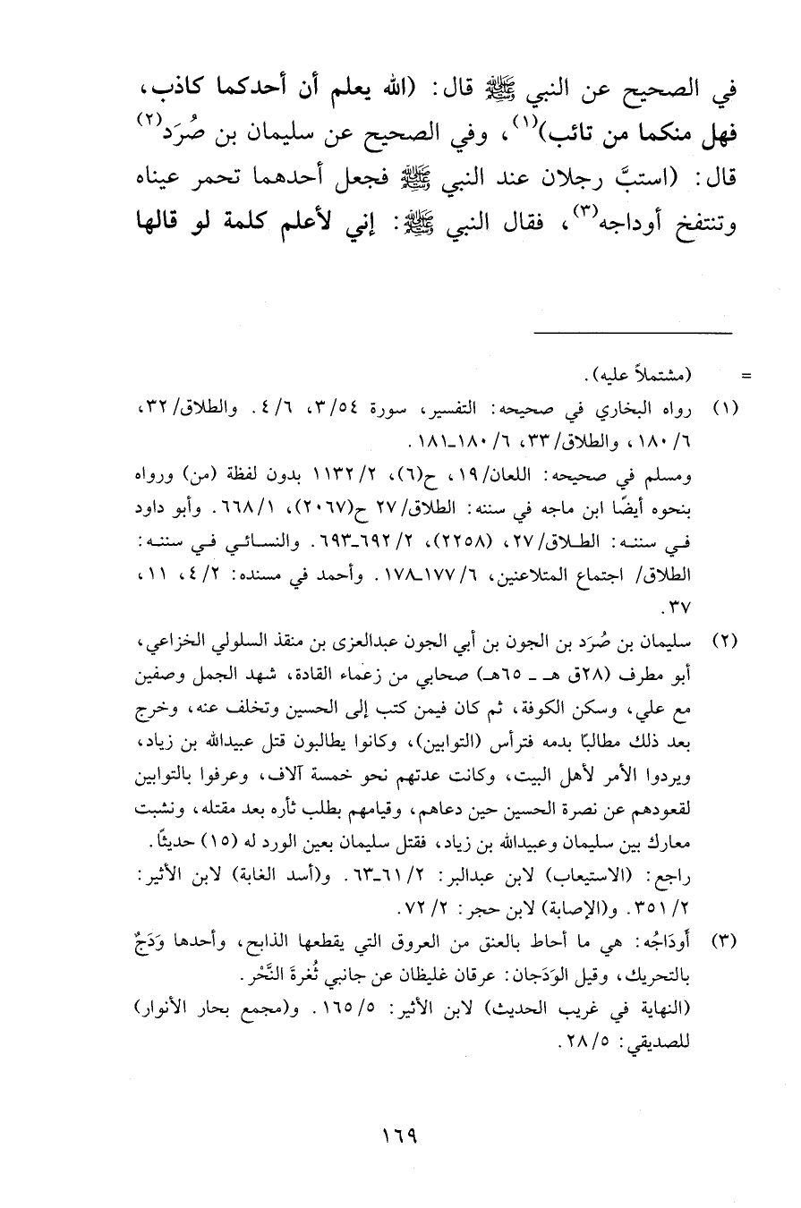 في الصحيح عن النبي صلى الله عليه وسلم قال الله يعلم أن أحدكما كاذب فهل منكما من تائب وفي الصحيح عن سليمان بن صُرَد قال استبَّ رجلان عند النبي صلى الله عليه وسلم فجعل أحدهما تحمر عيناه وتنتفخ أوداجه فقال النبي صلى الله عليه وسلم إني لأعلم كلمة لو قالها