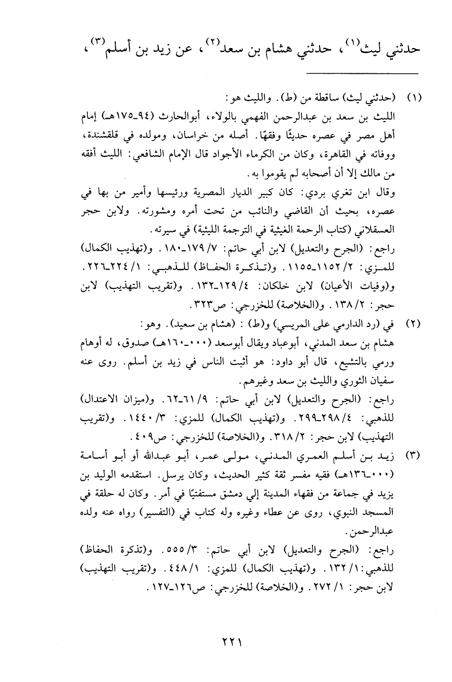 حدثني ليث حدثني هشام بن سعد عن زيد بن أسلم