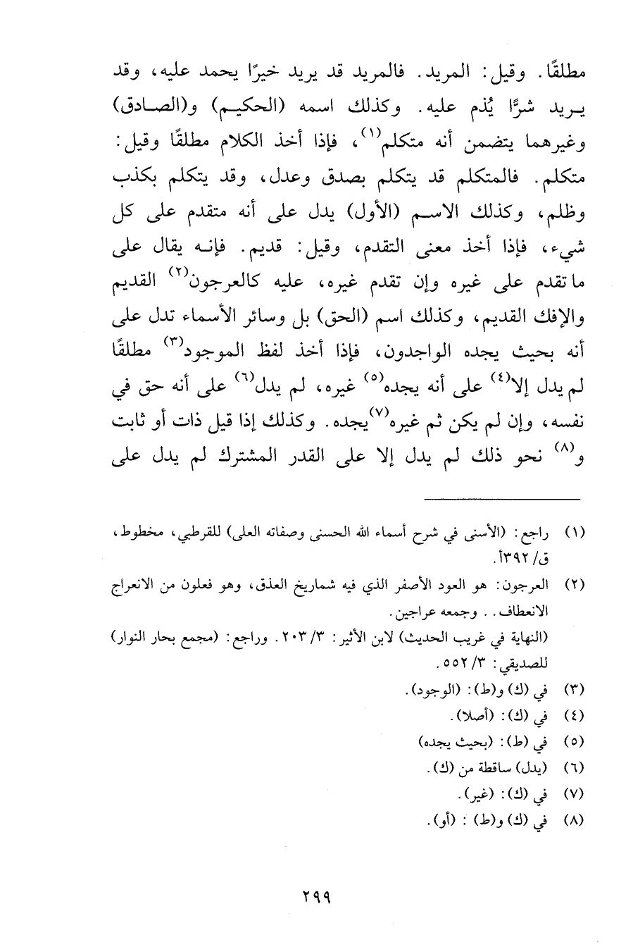 مطلقًا وقيل المريد فالمريد قد يريد خيرًا يحمد عليه وقد يريد شرًّا يُذم عليه وكذلك اسمه الحكيم والصادق وغيرهما يتضمن أنه متكلم فإذا أخذ الكلام مطلقًا وقيل متكلم فالمتكلم قد يتكلم بصدق وعدل وقد يتكلم بكذب وظلم وكذلك الاسم الأول يدل على أنه متقدم على كل شيء فإذا أخذ معنى التقدم وقيل قديم فإنه يقال على ما تقدم على غيره وإن تقدم غيره عليه كالعرجون القديم والإفك القديم وكذلك اسم الحق بل وسائر الأسماء تدل على أنه بحيث يجده الواجدون فإذا أخذ لفظ الموجود مطلقًا لم يدل إلا على أنه يجده غيره لم يدل على أنه حق في نفسه وإن لم يكن ثم غيره يجده وكذلك إذا قيل ذات أو ثابت ونحو ذلك لم يدل إلا على القدر المشترك لم يدل على