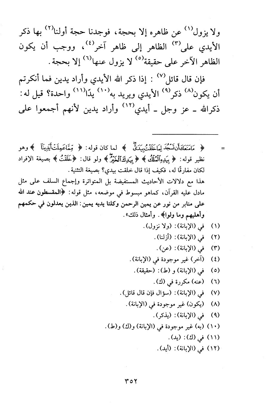 ولا يزول عن ظاهره إلا بحجة فوجدنا حجة أولنا بها ذكر الأيدي على الظاهر إلى ظاهر آخر ووجب أن يكون الظاهر الآخر على حقيقة لا يزول عنها إلا بحجة فإن قال قائل إذا ذكر الله الأيدي وأراد يدين فما أنكرتم أن يكون ذكر الأيدي ويريد به يدًا واحدة قيل له ذكر الله عز وجل أيدي وأراد يدين لأنهم أجمعوا على
