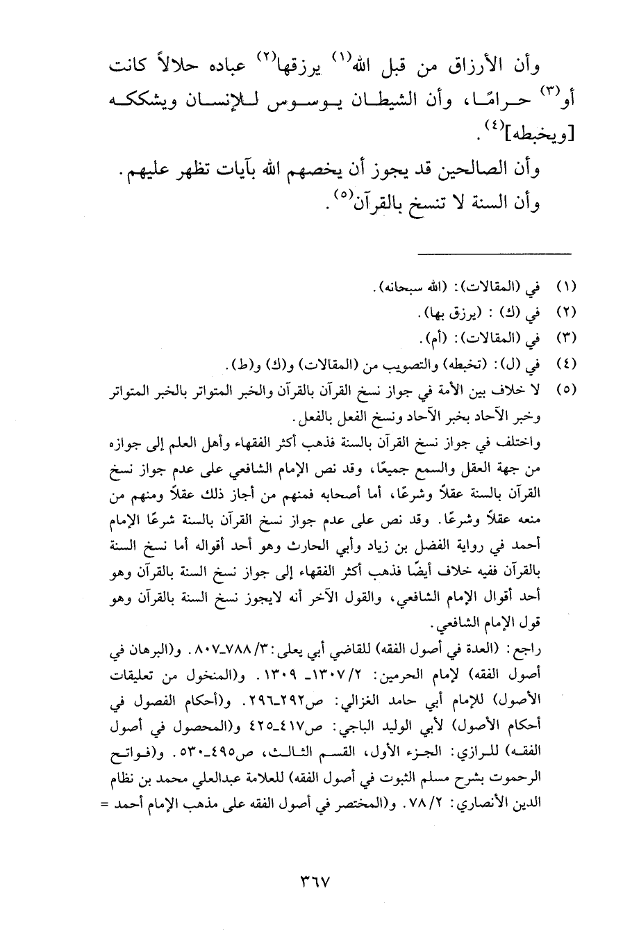 وأن الأرزاق من قبل الله يرزقها عباده حلالاً كانت أو حرامًا وأن الشيطان يوسوس للإنسان ويشككه ويخبطه وأن الصالحين قد يجوز أن يخصهم الله بآيات تظهر عليهم وأن السنة لا تنسخ بالقرآن