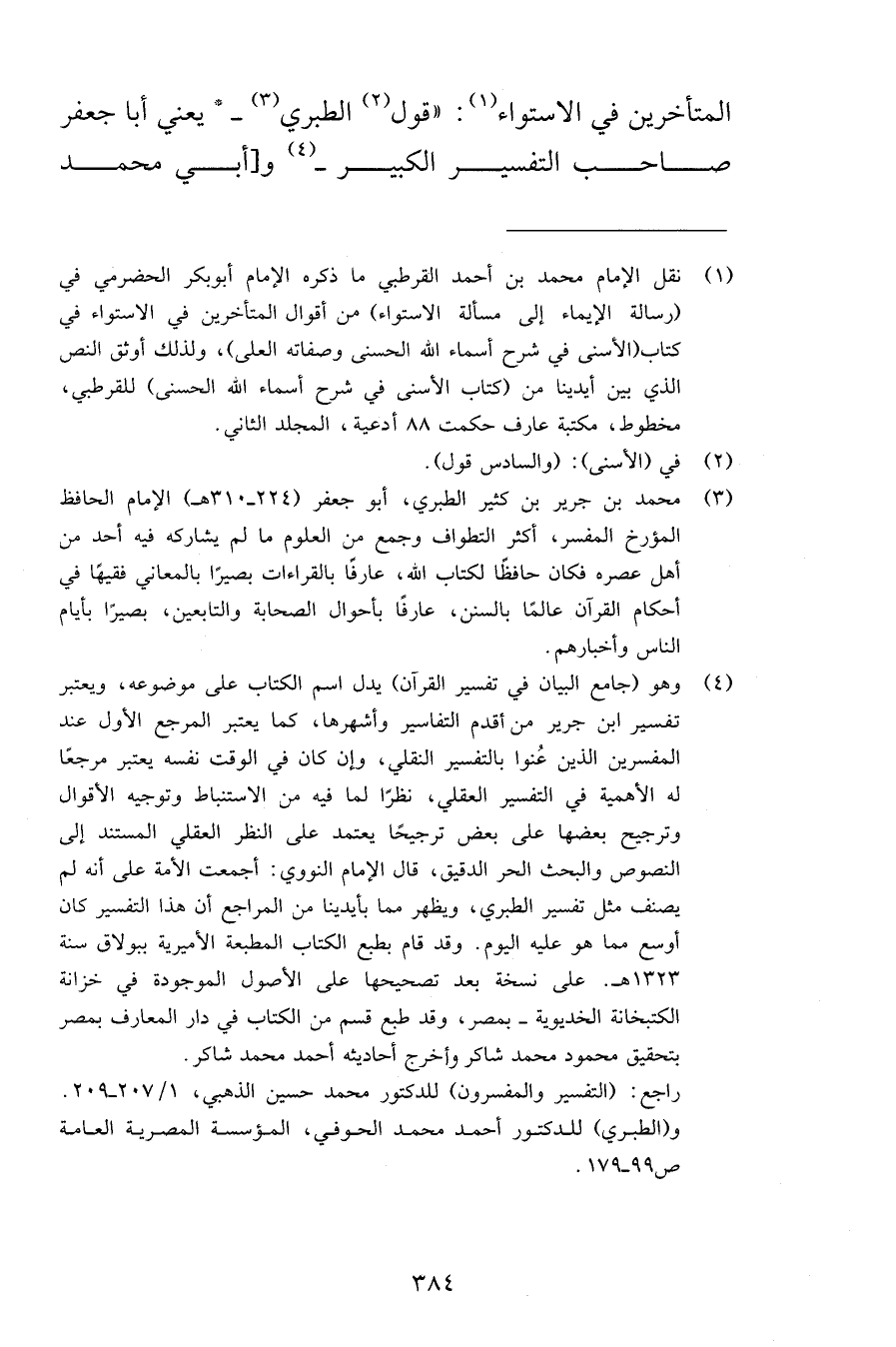 المتأخرين في الاستواء قول الطبري يعني أبا جعفر صاحب التفسير الكبير وأبي محمد