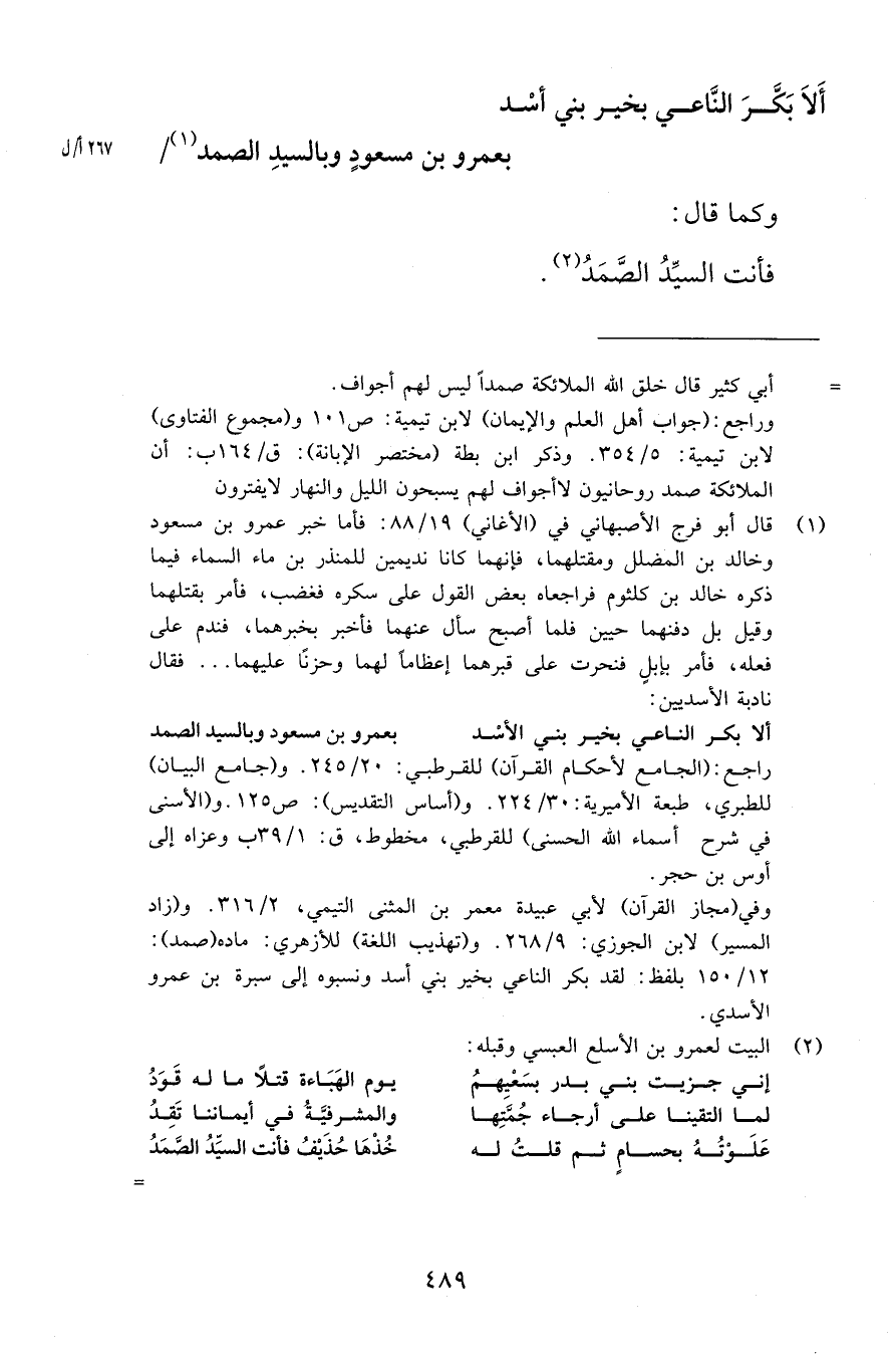 أَلاَ بَكَّرَ النَّاعي بخير بني أشد بعمرو بن مسعودٍ وبالسيدِ الصمد وكما قال فأنت السيِّدُ الصَّمَدُ