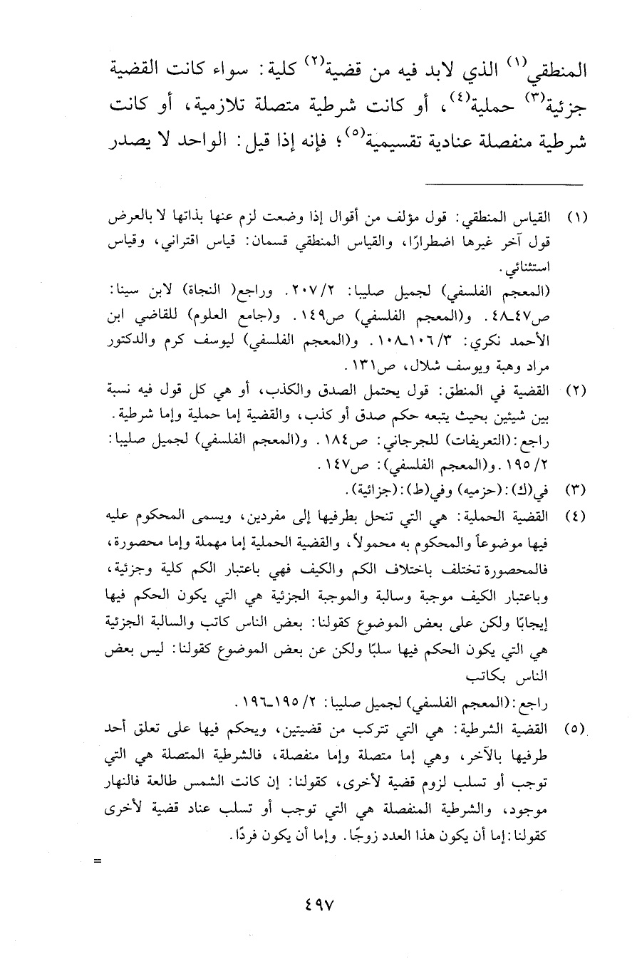 المنطقي الذي لابد فيه من قضية كلية سواء كانت القضية جزئية حملية أو كانت شرطية متصلة تلازمية أو كانت شرطية منفصلة عنادية تقسيمية فإنه إذا قيل الواحد لا يصدر