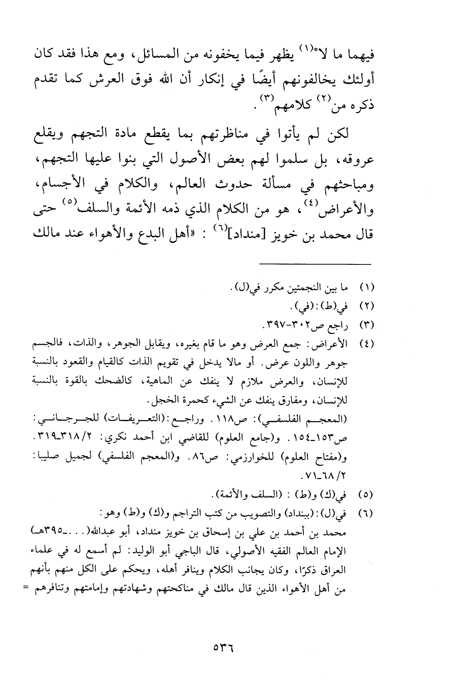 فيهما ما لا يظهر فيما يخفونه من المسائل ومع هذا فقد كان أولئك يخالفونهم أيضًا في إنكار أن الله فوق العرش كما تقدم ذكره من كلامهم لكن لم يأتوا في مناظرتهم بما يقطع مادة التجهم ويقلع عروقه بل سلموا لهم بعض الأصول التي بنوا عليها التجهم ومباحثهم في مسألة حدوث العالم والكلام في الأجسام والأعراض هو من الكلام الذي ذمه الأئمة والسلف حتى قال محمد بن خويز منداد أهل البدع والهواء عند مالك
