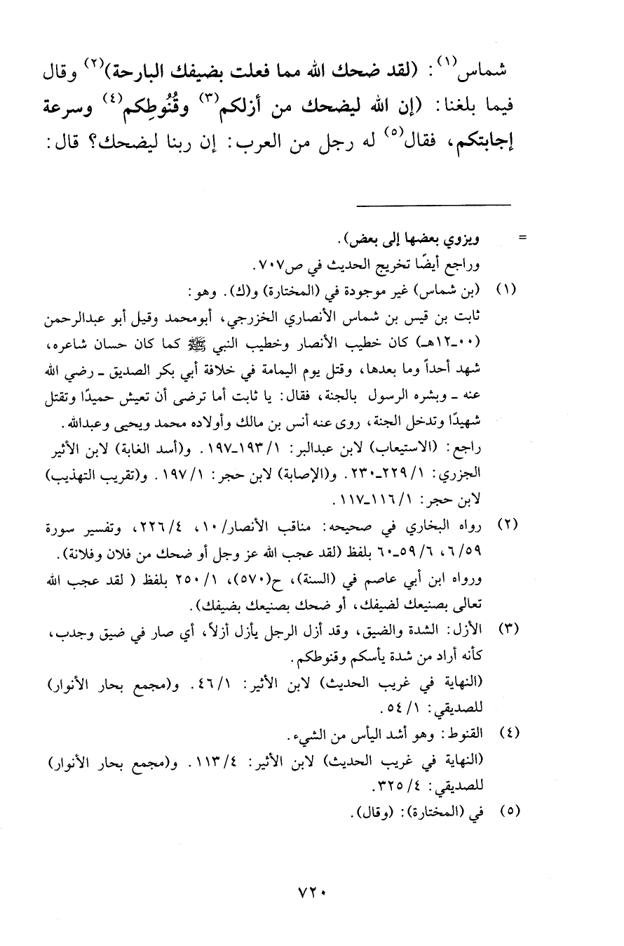 شماس لقد ضحك الله مما فعلت بضيفك البارحة وقال فيما بلغنا إن الله ليضحك من أزلكم وقُنُوطِكم وسرعة إجابتكم فقال له رجل من العرب إن ربنا ليضحك قال