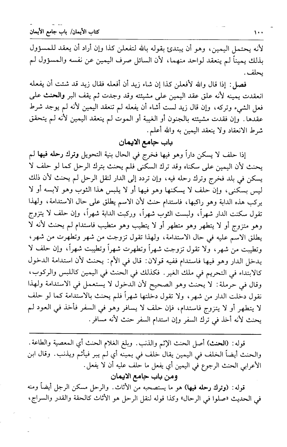 إذا حلف لا يسكن دارا وهو فيها فخرج في الحال بنية التحويل وترك رحله فيها لم يحنث لأن اليمين على سكناه وقد ترك السكنى فلم يحنث بترك الرحل كما لو حلف لا يسكن في بلد فخرج وترك رحله فيه وإن تردد إلى الدار لنقل الرحل لم يحنث لأن ذلك ليس بسكنى وإن حلف لا يسكنها وهو فيها أولا يلبس هذا الثوب وهو لابسه أولا يركب هذه الدابة وهو راكبها فاستدام حنث لأن الاسم يطلق على حال الاستدامة ولهذا تقول سكنت الدار شهرا ولبست الثوب شهرا وركبت الدابة شهرا وإن حلف لا يتزوج وهو متزوج أولا يتطهر وهو متطهر أولا يتطيب وهو متطيب فاستدام لم يحنث لأنه لا يطلق الاسم عليه في حال الاستدامة ولهذا تقول تزوجت من شهر وتطهرت من شهر وتطيبت من شهر ولا تقول تزوجت شهرا وتطهرت شهرا وتطيبت شهرا وإن حلف لا يدخل الدار وهو فيها فاستدام ففيه قولان: قال في الأم: يحنث لأن استدامة الدخول كالإبتداء في التحريم في ملك الغير فكذلك في الحنث في اليمين كاللبس والركوب وقال في حرملة: لا يحنث وهو الصحيح لأن الدخول لا يستعمل في الاستدامة ولهذا نقول دخلت الدار من شهر ولا تقول دخلتها شهراً فلم يحنث بالاستدامة كما لو حلف لا يتطهر أولا يتزوج فاستدام فإن حلف لا يسافر وهو في السفر فأخذ في العود لم يحنث لأنه أخذ في ترك السفر وإن استدام السفر حنث لأنه مسافر.