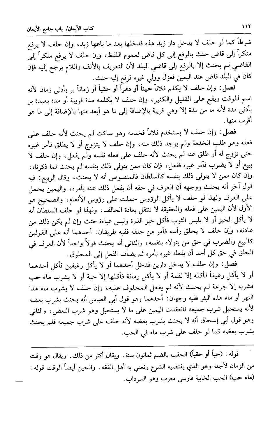 فصل: وإن حلف لا يكلم فلاناً حيناً أو دهراً أو حقباً أو زماناً بر بأدنى زمان لأنه اسم للوقت ويقع على القليل والكثير وإن حلف لا يكلمه مدة قريبة أو مدة بعيدة بر بأدنى مدة لأنه ما من مدة إلا وهي قريبة بالإضافة إلى ما هو أبعد منها بالإضافة إلى ما هو أقرب منها.