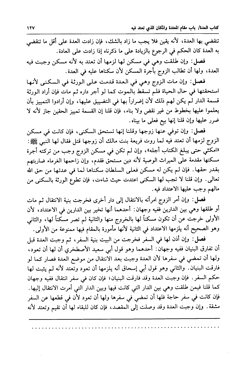 فصل: وإن أذن لها في السفر فخرجت من البيت بنية السفر ثم وجبت العدة قبل أن تفارق البنيان ففيه وجهان: أحدهما: وهو قول أبي سعيد الإصطخري أن لها أن تعود ولها أن تمضي في سفرها لأن العدة وجبت بعد الانتقال من موضع العدة فصار كما لو فارقت البنيان والثاني: وهو قول أبي إسحاق أنه يلزمها أن تعود وتعتد لأنه لم يثبت لها حكم السفر فإن وجبت العدة وقد فارقت البنيان فإن كان في سفر انتقال ففيه وجهان كما قلنا فيمن طلقت وهي بين الدار التي كانت فيها وبين الدار التي أمرت الانتقال إليها فإن كانت في سفر حاجة فلها أن تمضي في سفرها ولها أن تعود لأن في قطعها عن السفر مشقة وإن وجبت العدة وقد وصلت إلى المقصد فإن كان للبقاء لها أن تقيم وتعتد لأنه