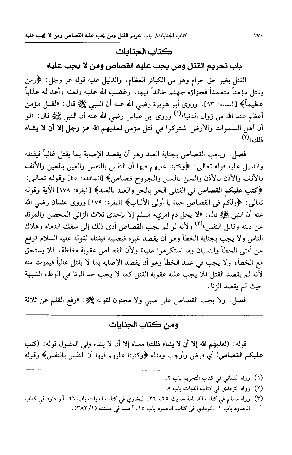 3 رواه مسلم في كتاب القسامة حديث 25، 26. البخاري في كتاب الديات باب 66. أبو داود في كتاب الحدود باب 1. الترمذي في كتاب الحدود باب 15. أحمد في مسنده 1/382.