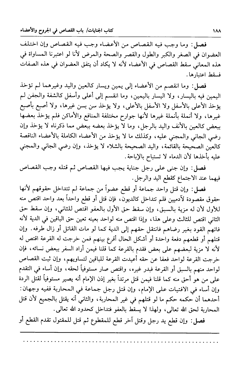 فصل: وما انقسم من الأعضاء إلى يمين ويسار كالعين واليد وغيرهما لم تؤخذ اليمين فيه باليسار ولا اليسار باليمين وما انقسم إلى أعلى وأسفل كالشفة والجفن لم يؤخذ الأعلى بالأسفل ولا الأسفل بالأعلى ولا تؤخذ سن بسن غيرها ولا أصبع بأصبع غيرها ولا أنملة بأنملة غيرها لأنها جوارح مختلفة المنافع والأماكن فلم يؤخذ بعضها ببعض كالعين بالأنف واليد بالرجل وما لا يؤخذ بعضه ببعض مما ذكرناه لا يؤخذ وإن رضي الجاني والمجني عليه وكذلك ما لا يؤخذ من الأعضاء الكاملة بالأعضاء الناقصة كالعين الصحيحة بالقائمة واليد الصحيحة بالشلاء لا يؤخذ وإن رضي الجاني والمجني عليه بأخذها لأن الدماء لا تستباح بالإباحة.