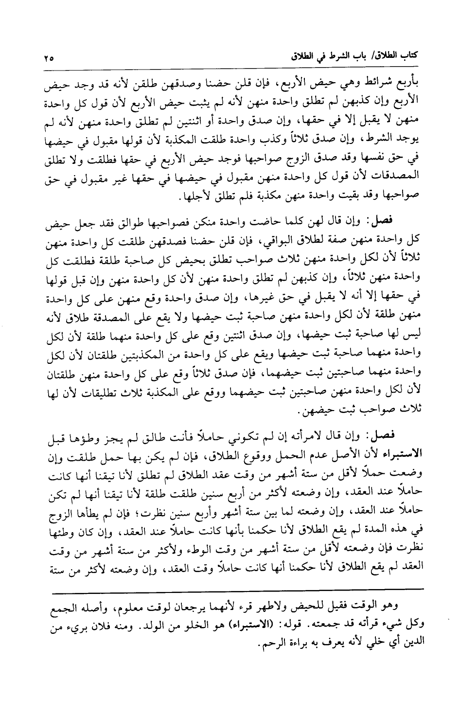 فصل: وإن قال لامرأته إن لم تكوني حاملاً فأنت طالق لم يجز وطؤها قبل الاستبراء لأن الأصل عدم الحمل ووقوع الطلاق فإن لم يكن بها حمل طلقت وإن وضعت حملاً لأقل من ستة أشهر من وقت عقد الطلاق لم تطلق لأنا تيقنا من أنها كانت حاملا عند العقد وإن وضعته لأكثر من أربع سنين طلقت طلقة لأنا تيقنا أنها لم تكن حاملاً عند العقد وإن وضعته لما بين ستة أشهر وأربع سنين نظرت فإن لم يطأها الزوج في هذه المدة لم يقع الطلاق لأنا حكمنا بأنها كانت حاملا عند العقد وإن كان وطئها نظرت فإن وضعته لأقل من ستة أشهر من وقت العقد لم يقع الطلاق لأنا حكمنا أنها كانت حاملاً وقت العقد وإن وضعته لأكثر من ستة