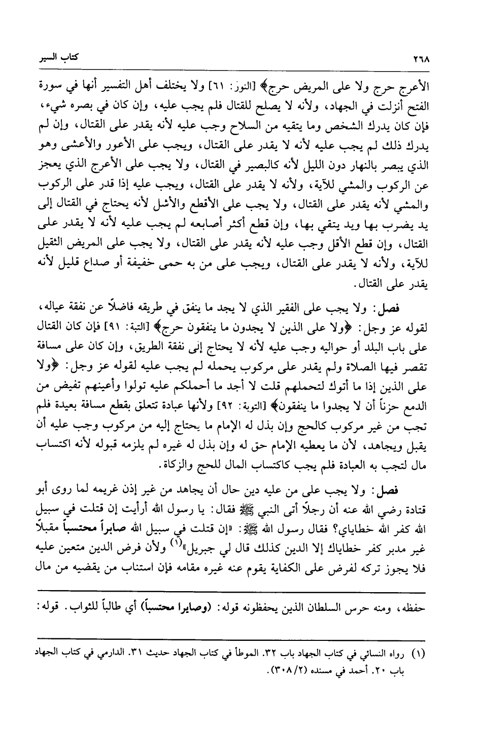 1 رواه النسائي في كتاب الجهاد باب 32. الموطأ في كتاب الجهاد حديث 31. الدارمي في كتاب الجهاد باب 20. أحمد في مسنده 2/308.