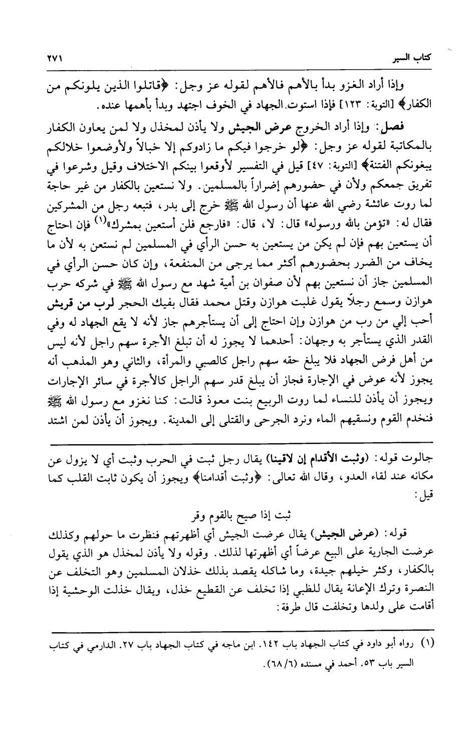 1 رواه أبو داود في كتاب الجهاد باب 142. ابن ماجه في كتاب الجهاد باب 27. الدارمي في كتاب السير باب 53. أحمد في مسنده 6/68.