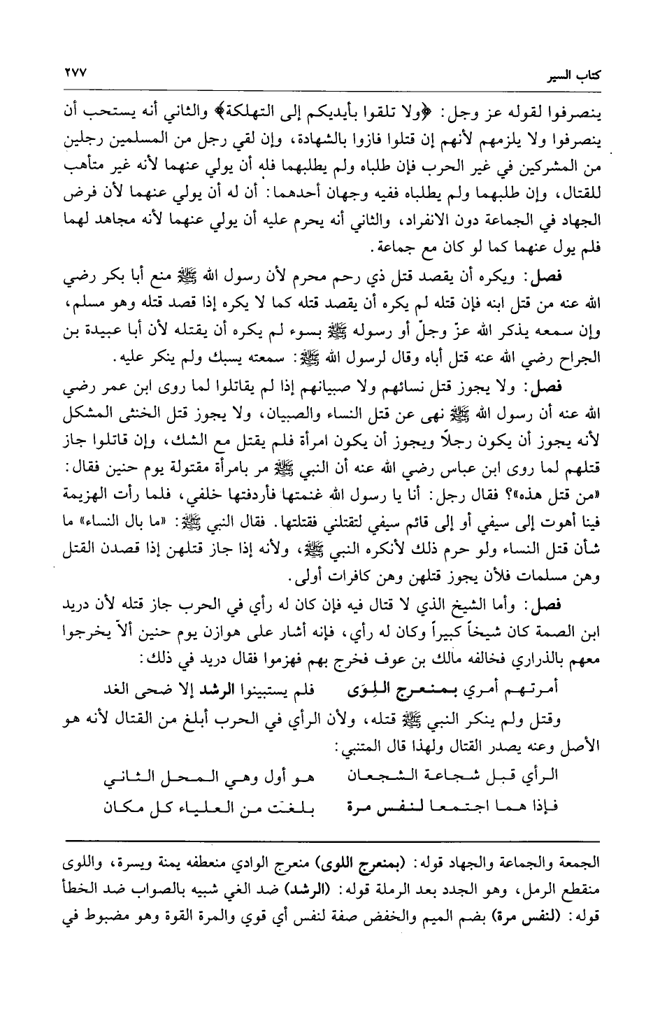 وقتل ولم ينكر النبي صلى الله عليه وسلم قتله ولأن الرأي في الحرب أبلغ من القتال لأنه هو الأصل وعنه يصدر القتال ولهذا قال المتنبي:
