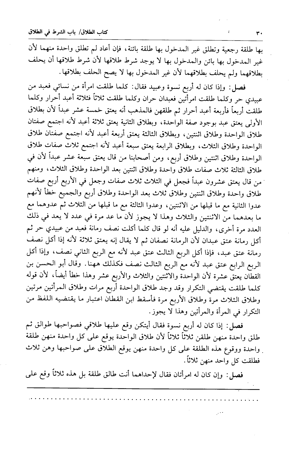 فصل: وإذا كان له أربعة نسوة وعبيد فقال: كلما طلقت امرأة من نسائي فعبد من عبيدي حر وكلما طلقت امرأتين فعبدان حران وكلما طلقت ثلاثا فثلاثة أعبد أحرار وكلما طلقت أربعاً فأربعة أعبد أحرار ثم طلقهن فالمذهب أنه يعتق خمسة عشر عبداً لأن بطلاق الأولى يعتق عبد بوجود صفة الواحدة وبطلاق الثانية يعتق ثلاثة أعبد لأنه اجتمع صفتان طلاق الواحدة وطلاق اثنتين وبطلاق الثالثة يعتق أربعة أعبد لأنه اجتمع صفتان طلاق الواحدة وطلاق الثلاث وبطلاق الرابعة يعتق سبعة أعبد لأنه اجتمع ثلاث صفات طلاق الواحدة وطلاق اثنتين وطلاق أربع ومن أصحابنا من قال يعتق سبعة عشر عبداً لأن في طلاق الثالثة ثلاث صفات طلاق واحدة وطلاق اثنتين بعد الواحدة وطلاق الثلاث ومنهم من قال يعتق عشرون عبداً فجعل في الثلاث ثلاث صفات وجعل في الأربع أربع صفات طلاق واحدة وطلاق اثنتين وطلاق ثلاث بعد الواحدة وطلاق أربع والجميع خطأ لأنهم عدوا الثانية مع ما قبلها من الاثنتين وعدوا الثالثة مع ما قبلها من الثلاث ثم عدوهما مع ما بعدهما من الاثنتين والثلاث وهذا لا يجوز لأن ما عد مرة في عدد لا يعد في ذلك العدد مرة أخرى والدليل عليه أنه لو قال كلما أكلت نصف رمانة فعبد من عبيدي حر ثم أكل رمانة عتق عبدان لأن الرمانة نصفان ثم لا يقال إنه يعتق ثلاثة لأنه إذا أكل نصف رمانة عتق عبد فإذا أكل الربع الثالث عتق عبد لأنه مع الربع الثاني نصف وإذا أكل الربع الرابع عتق عبد لأنه مع الربع الثالث نصف فكذلك ههنا وقال أبو الحسن بن القطان يعتق عشرة لأن الواحدة والاثنتين والثلاث والأربع عشر وهذا خطأ أيضاً لأن قوله كلما طلقت يقتضي التكرار وقد وجد طلاق الواحدة أربع مرات وطلاق المرأتين مرتين وطلاق الثلاث مرة وطلاق الأربع مرة فأسقط ابن القطان اعتبار ما يقتضيه اللفظ من التكرار في المرأة والمرأتين وهذا لا يجوز.