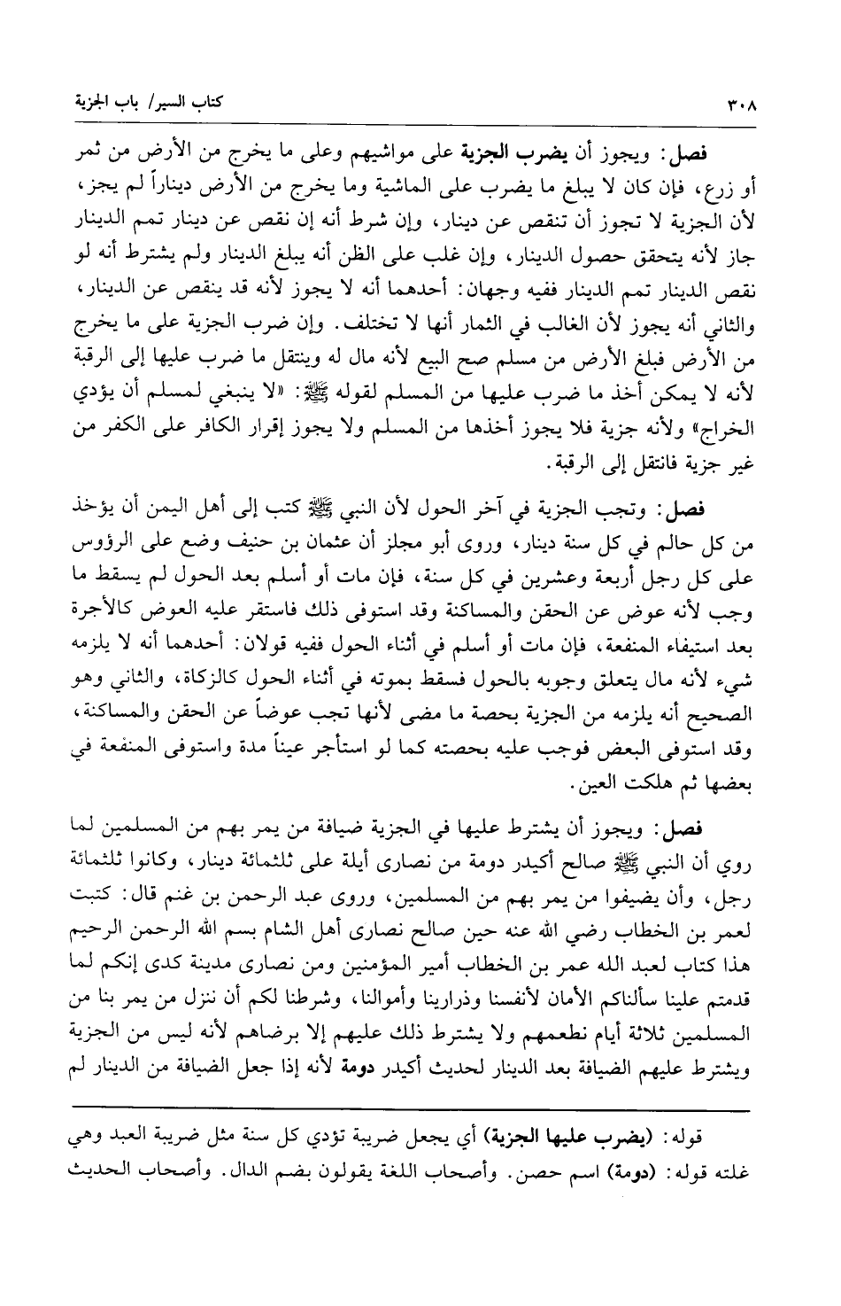 فصل: ويجوز أن يشترط عليها في الجزية ضيافة من يمر بهم من المسلمين لما روي أن النبي صلى الله عليه وسلم صالح أكيدر دومة من نصارى أيلة على ثلاثمائة دينار وكانوا ثلاثمائة رجل وأن يضيفوا من يمر بهم من المسلمين وروى عبد الرحمن بن غنم قال: كتبت لعمر بن الخطاب رضي الله عنه حين صالح نصارى أهل الشام بسم الله الرحمن الرحيم هذا كتاب لعبد الله بن عمر بن الخطاب أمير المؤمنين ومن نصارى مدينة كدى إنكم لما قدمتم علينا سألناكم الأمان لأنفسنا وذرارينا وأموالنا وشرطنا لكم أن ننزل من يمر بنا من المسلمين ثلاثة أيام نطعمهم ولا يشترط ذلك عليهم إلا برضاهم لأنه ليس من الجزية ويشترط عليهم الضيافة بعد الدينار لحديث أكيدر دومة لأنه إذا جعل الضيافة من الدينار لم