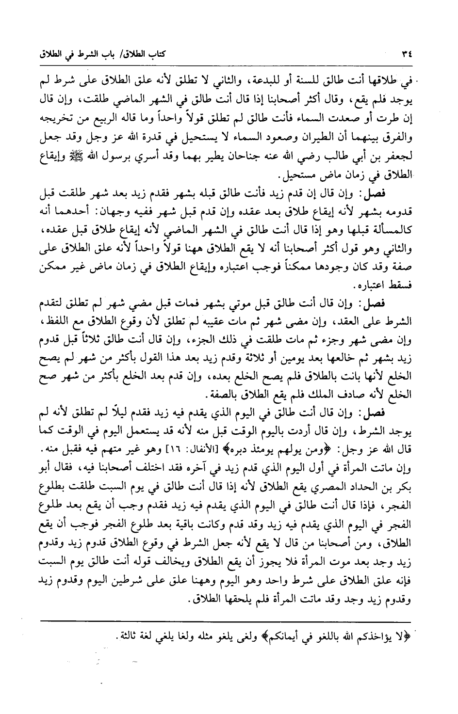 فصل: وإن قال أنت طالق في اليوم الذي يقدم فيه زيد فقدم ليلاً لم تطلق لأنه لم يوجد الشرط وإن قال أردت باليوم الوقت قبل منه لأنه قد يستعمل اليوم في الوقت كما قال الله عز وجل: {وَمَنْ يُوَلِّهِمْ يَوْمَئِذٍ دُبُرَهُ} [الأنفال: 16] وهو غير متهم فيه فقبل منه وإن ماتت المرأة في أول اليوم الذي قدم زيد في آخره فقد اختلف أصحابنا فيه فقال أبو بكر بن الحداد المصري يقع الطلاق لأنه إذا قال أنت طالق في يوم السبت طلقت بطلوع الفجر فإذا قال أنت طالق في اليوم الذي يقدم فيه زيد فقدم وجب أن يقع بعد طلوع الفجر في اليوم الذي يقدم فيه زيد وقد قدم وكانت باقية بعد طلوع الفجر فوجب أن يقع الطلاق ومن أصحابنا من قال لا يقع لأنه جعل الشرط في وقوع الطلاق قدوم زيد وقدوم زيد وجد بعد موت المرأة فلا يجوز أن يقع الطلاق ويخالف قوله أنت طالق يوم السبت فإنه علق الطلاق على شرط واحد وهو اليوم وههنا علق على شرطين اليوم وقدوم زيد وقدوم زيد وجد وقد ماتت المرأة فلم يلحقها الطلاق.