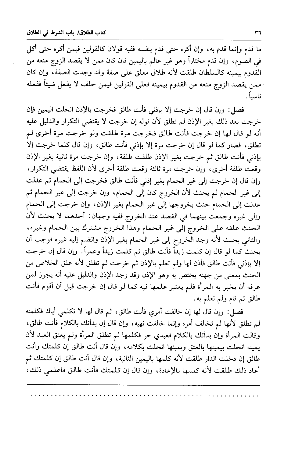 فصل: وإن قال إن خرجت إلا بإذني فأنت طالق فخرجت بالإذن انحلت اليمين فإن خرجت بعد ذلك بغير الأذن لم تطلق لأن قوله إن خرجت لا يقتضي التكرار والدليل عليه أنه لو قال لها إن خرجت فأنت طالق فخرجت مرة طلقت ولو خرجت مرة أخرى لم تطلق فصار كما لو قال إن خرجت مرة إلا بإذني فأنت طالق وإن قال كلما خرجت إلا بإذني فأنت طالق ثم خرجت بغير الإذن طلقت طلقة وإن خرجت مرة ثانية بغير الإذن وقعت طلقة أخرى وإن خرجت مرة ثالثة وقعت طلقة أخرى لأن اللفظ يقتضي التكرار وإن قال إن خرجت إلى غير الحمام بغير إذني فأنت طالق فخرجت إلى الحمام ثم عدلت إل غير الحمام لم يحنث لأن الخروج كان إلى الحمام وإن خرجت إلى غير الحمام ثم عدلت إلى الحمام حنث بخروجها إلى غير الحمام بغير الإذن وإن خرجت إلى الحمام وإلى غيره وجمعت بينهما في القصد عند الخروج ففيه وجهان: أحدهما: لا يحنث لأن الحنث علقه على الخروج إلى غير الحمام وهذا الخروج مشترك بين الحمام وغيره والثاني: يحنث لأنه وجد الخروج إلى غير الحمام بغير الإذن وانضم إليه غيره فوجب أن يحنث كما لو قال إن كلمت زيداً فأنت طالق ثم كلمت زيدا وعمرا وإن قال إن خرجت إلا بإذني فأنت طالق فأذن لها ولم تعلم بالإذن ثم خرجت لم تطلق لأنه علق الخلاص من الحنث بمعنى من جهته يختص به وهو الإذن وقد وجد الإذن والدليل عليه أنه يجوز لمن عرفه أن يخبر به المرأة فلم يعتبر علمها فيه كما لو قال إن خرجت قبل أن أقوم فأنت طالق ثم قام ولم تعلم به.