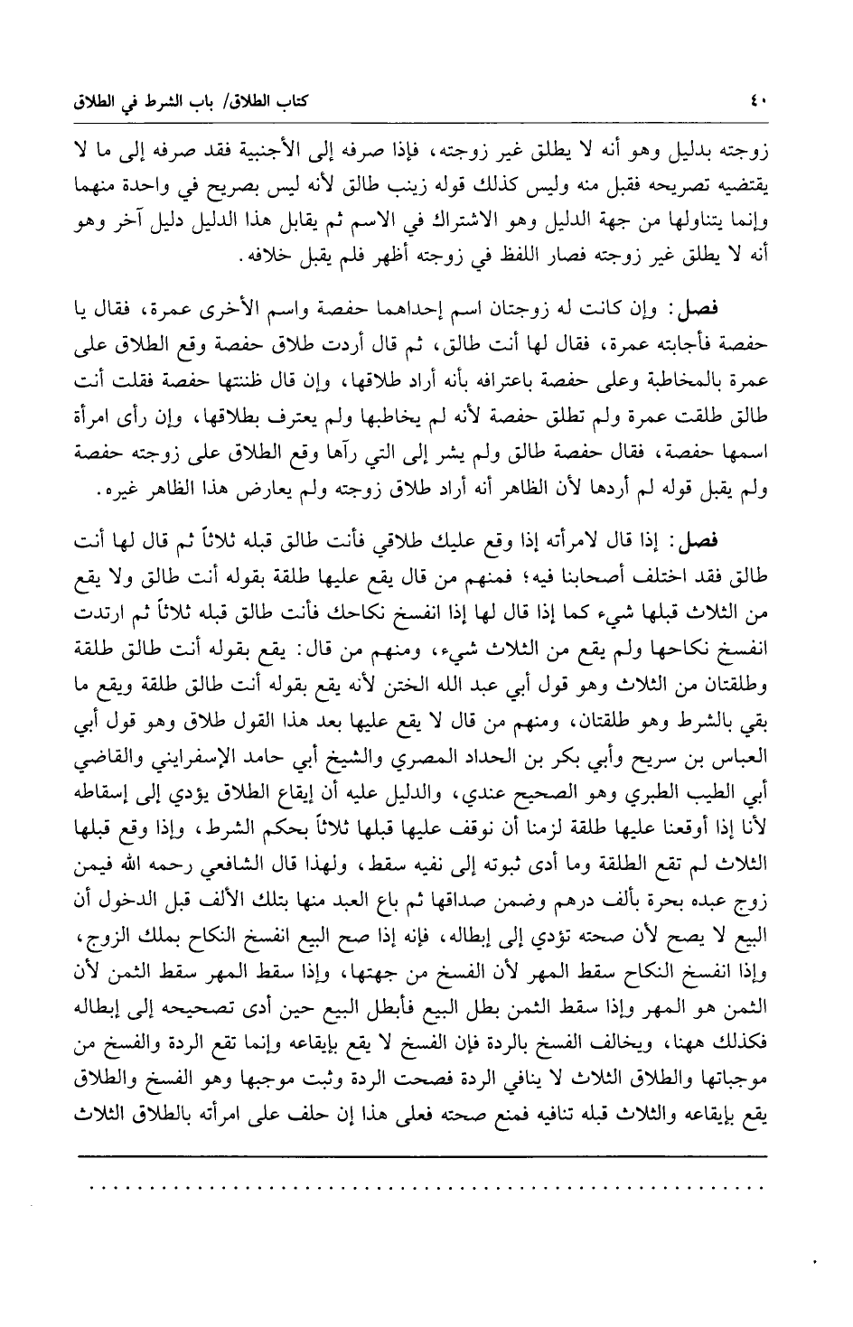 فصل: وإن كانت له زوجتان اسم إحداهما حفصة واسم الأخرى عمرة فقال يا حفصة فأجابته عمرة فقال لها أنت طالق ثم قال أردت طلاق حفصة وقع الطلاق على عمرة بالمخاطبة وعلى حفصة باعترافه بأنه أراد طلاقها وإن قال ظننتها حفصة فقلت أنت طالق طلقت عمرة ولم تطلق حفصة لأنه لم يخاطبها ولم يعترف بطلاقها وإن رأى امرأة اسمها حفصة فقال حفصة طالق ولم يشر إلى التي رآها وقع الطلاق على زوجته حفصة ولم يقبل قوله لم أردها لأن الظاهر أنه أراد طلاق زوجته ولم يعارض هذا الظاهر غيره.