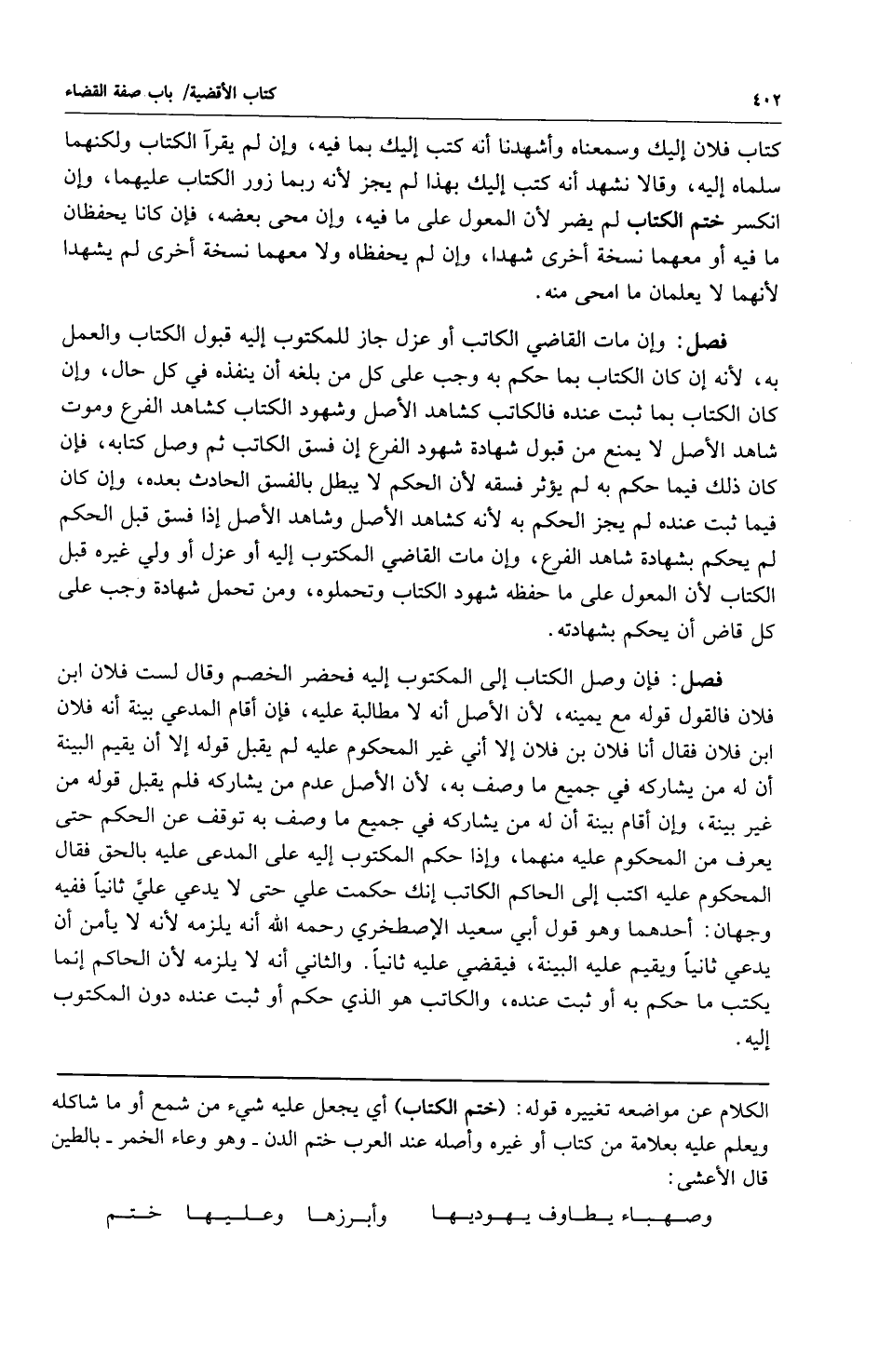 فصل: وإن مات القاضي الكاتب أو عزل جاز للمكتوب إليه قبول الكتاب والعمل به لأنه إن كان الكتاب بما حكم به وجب على كل من بلغه أن ينفذه في كل حال وإن كان الكتاب بما ثبت عنده فالكاتب كشاهد الأصل وشهود الكتاب كشاهد الفرع وموت شاهد الأصل لا يمنع من قبول شهادة شهود الفرع إن فسق الكاتب ثم وصل كتابه فإن كان ذلك فيما حكم به لم يؤثر فسقه لأن الحكم لا يبطل بالفسق الحارث بعده وإن كان فيما ثبت عنده لم يجز الحكم به لأنه كشاهد الأصل وشاهد الأصل إذا فسق قبل الحكم لم يحكم بشهادة شاهد الفرع وإن مات القاضي المكتوب إليه أو عزل أوولي غيره قبل الكتاب لأن المعول على ما حفظه شهود الكتاب وتحملوه ومن تحمل شهادة وجب على كل قاض أن يحكم بشهادته.