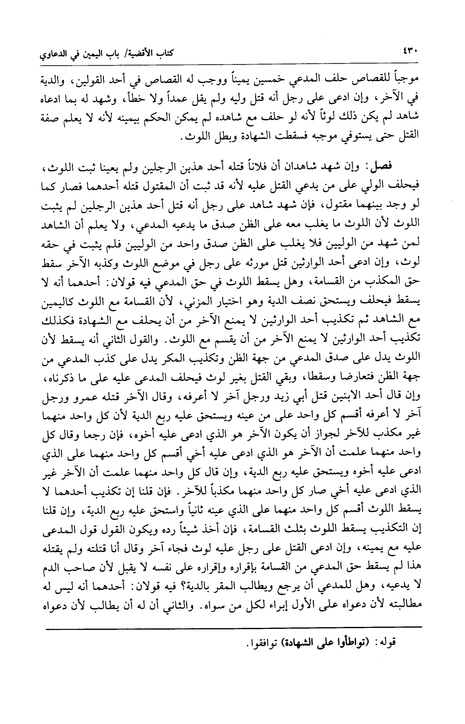 موجباً للقصاص حلف المدعي خمسين يميناً ووجب له القصاص في أحد القولين والدية في الآخر وإن ادعى على رجل أنه قتل وليه ولم يقل عمداً ولا خطأ وشهد له بما ادعاه شاهد لم يكن ذلك لوثاً لأنه لو حلف مع شاهده لم يمكن الحكم بيمينه لأنه لا يعلم صفة القتل حتى يستوفي موجبه فسقطت الشهادة وبطل اللوث.