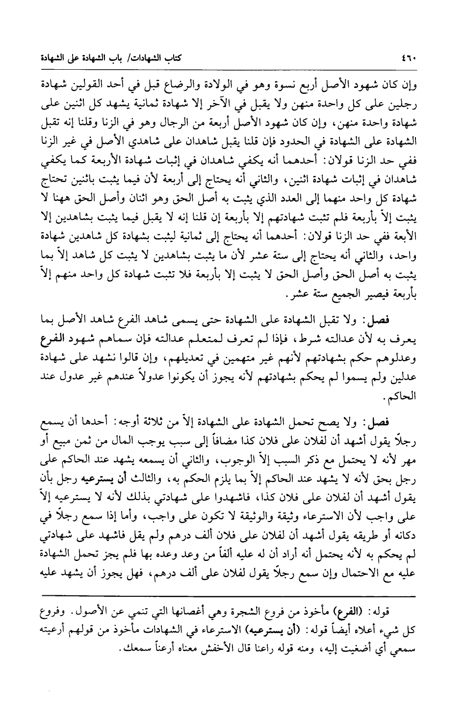 وإن كان شهود الأصل أربع نسوة وهو في الولادة والرضاع قبل في أحد القولين شهادة رجلين على كل واحدة منهن ولا يقبل في الآخر إلا شهادة ثمانية يشهد كل اثنين على شهادة واحدة منهن وإن كان شهود الأصل أربعة من الرجال وهو في الزنا وقلنا إنه تقبل الشهادة على الشهادة في الحدود فإن قلنا يقبل شاهدان على شاهدي الأصل في غير الزنا ففي حد الزنا قولان: أحدهما: أنه يكفي شاهدان في إثبات شهادة الأربعة كما يكفي شاهدان في إثبات شهادة اثنين والثاني: أنه يحتاج إلى أربعة لأن فيما يثبت باثنين تحتاج شهادة كل واحد منهما إلى العدد الذي يثبت به أصل الحق وهو اثنان وأصل الحق ههنا لا يثبت إلى بأربعة فلم تثبت شهادتهم إلا بأربعة إن قلنا إنه لا يقبل فيما يثبت بشاهدين إلى الأربعة ففي حد الزنا قولان: أحدهما: أنه يحتاج إلى ثمانية ليثبت بشهاد كل شاهدين شهادة واحد والثاني: أنه يحتاج إلى ستة عشر لأن ما يثبت بشاهدين لا يثبت كل شاهد إلا بما يثبت به أصل الحق وأصل الحق لا يثبت إلا بأربعة فلا تثبت شهادة كل واحد منهم إلا بأربعة فيصير الجميع ستة عشر.