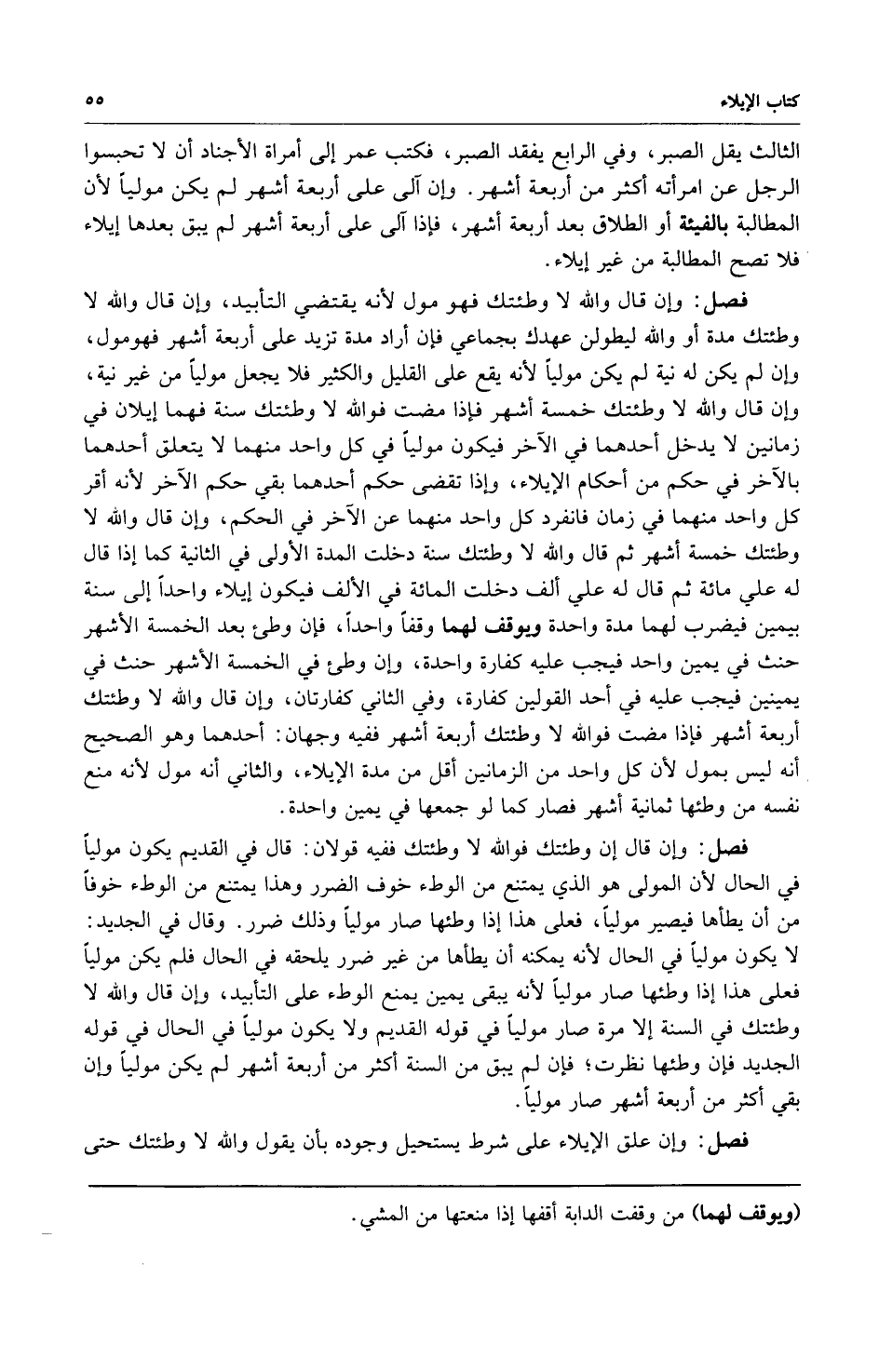 الثالث يقل الصبر وفي الرابع يفقد الصبر فكتب عمر إلى امرأة الأجناد أن لا تحبسوا الرجل عن امرأته أكثر من أربعة أشهر وإن آلى على أربعة أشهر لم يكن مولياً لأن المطالبة بالفيئة أو الطلاق بعد أربعة أشهر فإذا آلى على أربعة أشهر لم يبق بعدها إيلاء فلا تصح المطالبة من غير إيلاء.