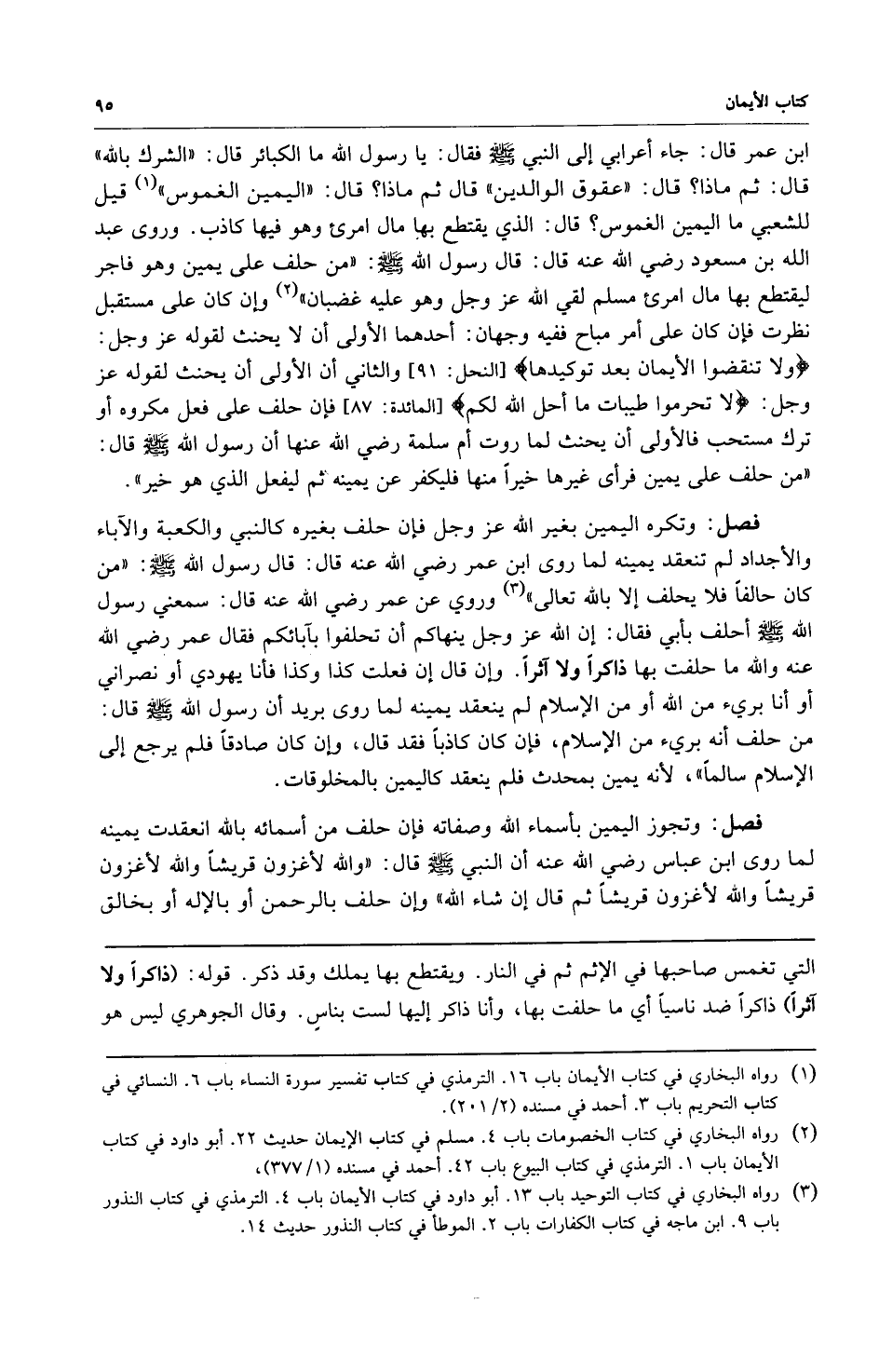 1 رواه البخاري في كتاب الأيمان باب 16. الترمذي في كتاب تفسير سورة النساء باب 6. النسائي في كتاب التحريم باب 3. أحمد في مسنده 2/201.