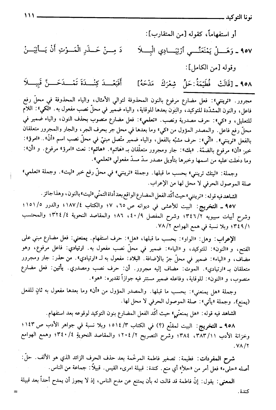 957- التخريج: البيت للأعشى في ديوانه ص65، 7؛ والكتاب 4/ 187، والدرر 5/ 151؛ وشرح أبيات سيبويه 2/ 346؛ وشرح المفصل 9/ 40، 86؛ والمقاصد النحوية 4/ 324؛ والمحتسب 1/ 349؛ وبلا نسبة في همع الهوامع 2/ 78.
