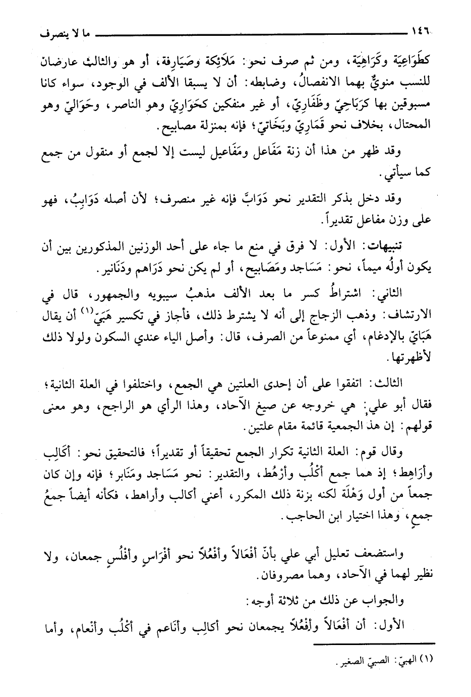 الثاني: اشتراط كسر ما بعد الألف مذهب سيبويه والجمهور، قال في الارتشاف: وذهب الزجاج إلى أنه لا يشترط ذلك فأجاز في تكسير هَبَيّ1 أن يقال: هباي بالإدغام، أي ممنوعًا من الصرف، قال: وأصل الياء عندي السكون ولولا ذلك لأظهرتها.