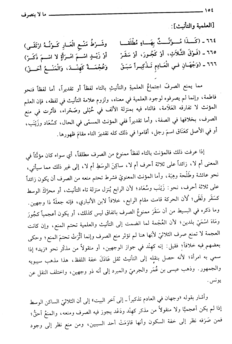 "كَذَا مُؤنَّثٌ بهاءٍ مُطلَقًا ... وشرطُ مَنْعِ العَارِ كَونُهُ ارْتقى"