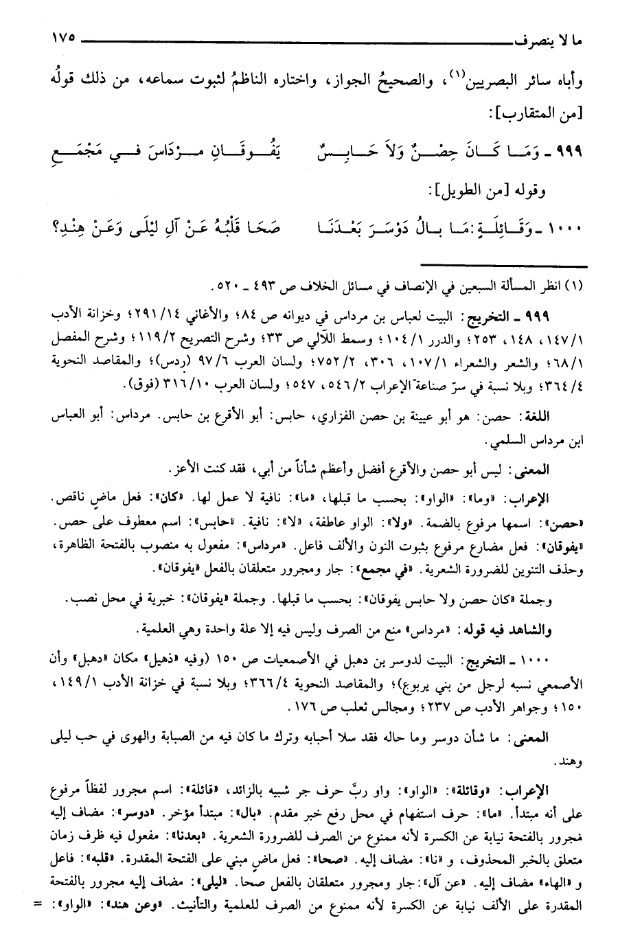 999- التخريج: البيت لعباس بن مرداس في ديوانه ص84؛ والأغاني 14/ 291؛ وخزانة الأدب 1/ 147، 148، 253؛ والدرر 1/ 104؛ وسمط اللآلي ص33؛ وشرح التصريح 2/ 119؛ وشرح المفصل 1/ 68، والشعر والشعراء 1/ 107، 306، 2/ 752؛ ولسان العرب 6/ 97 "ردس"؛ والمقاصد النحوية 4/ 346؛ وبلا نسبة في سر صناعة الإعراب 2/ 546، 547؛ ولسان العرب 10/ 316 "فوق".
