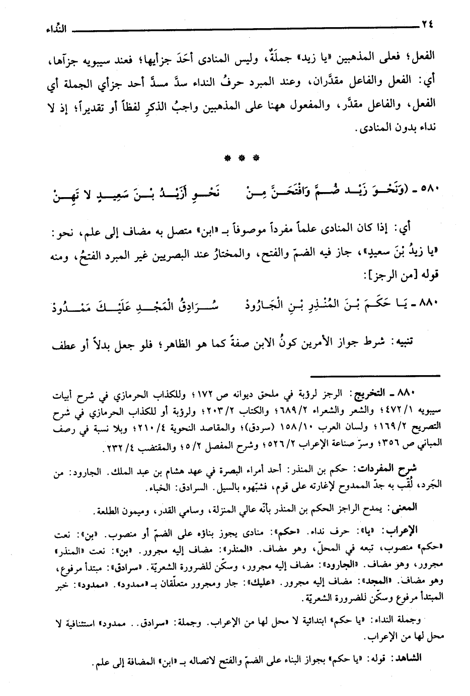 الشاهد: قوله "يا حكم" بجواز البناء على الضم والفتح لاتصاله بـ"ابن" المضافة إلى علم.
