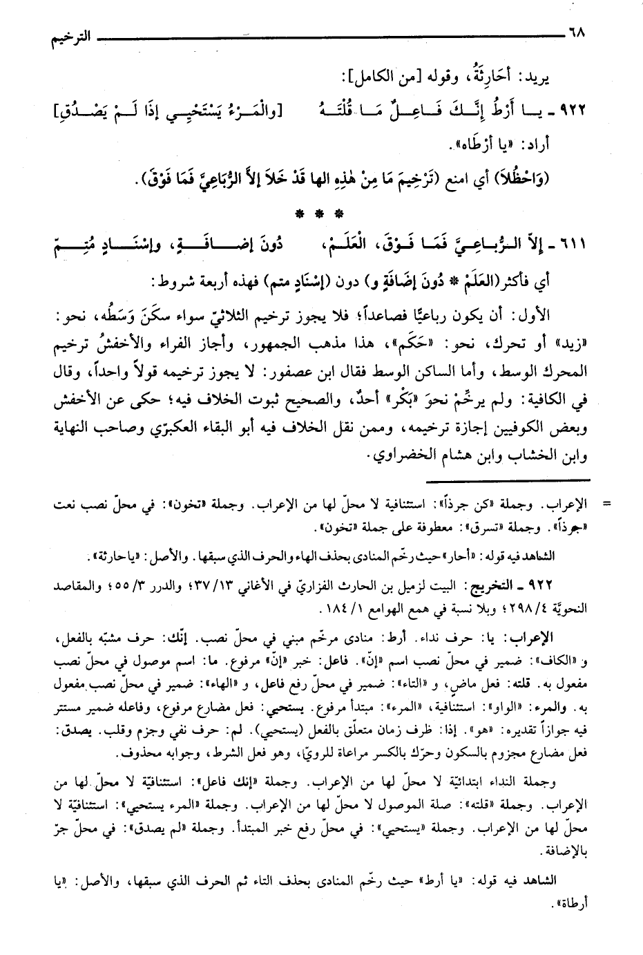 922- التخريج: البيت لزميل بني الحارث الفزاري في الأغاني 13/ 37؛ والدرر 3/ 55؛ والمقاصد النحوية 4/ 298؛ وبلا نسبة في همع الهوامع 1/ 184.