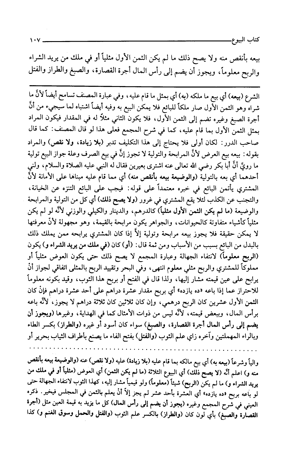 الشرع بيعه أي بيع ما ملكه به أي بمثل ما قام عليه وفي عبارة المصنف تسامح أيضا لأن ما شراه وهو الثمن الأول صار ملكا للبائع فلا يمكن البيع به وفيه أيضا اشتباه لما سيجيء من أن أجرة الصبغ وغيره تضم إلى الثمن الأول فلا يكون الثاني مثلا له في المقدار فيكون المراد بمثل الثمن الأول بما قام عليه كما في شرح المجمع فعلى هذا لو قال المصنف كما قال صاحب الدرر لكان أولى فلا يحتاج إلى هذا التكليف تدبر