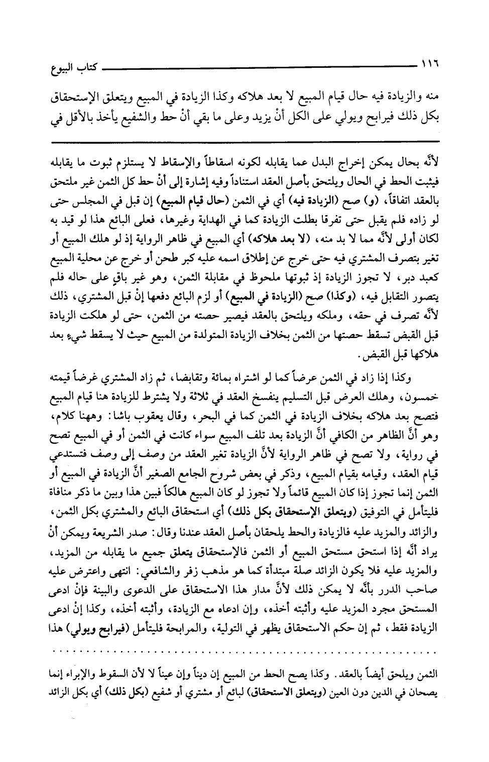 واعترض عليه صاحب الدرر بأنه لا يمكن ذلك لأن مدار هذا الاستحقاق على الدعوى والبينة فإن ادعى المستحق مجرد المزيد عليه وأثبته أخذه وإن ادعاه مع الزيادة وأثبته أخذه وكذا إن ادعى الزيادة فقط ثم إن حكم الاستحقاق يظهر في التولية والمرابحة فليتأمل فيرابح ويولي هذا