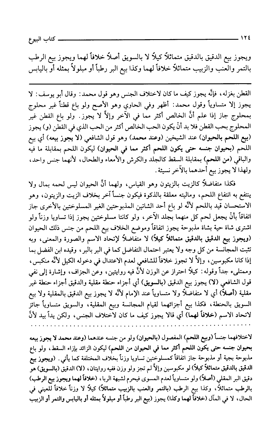 القطن بغزله فإنه يجوز كيف ما كان لاختلاف الجنس وهو قول محمد
