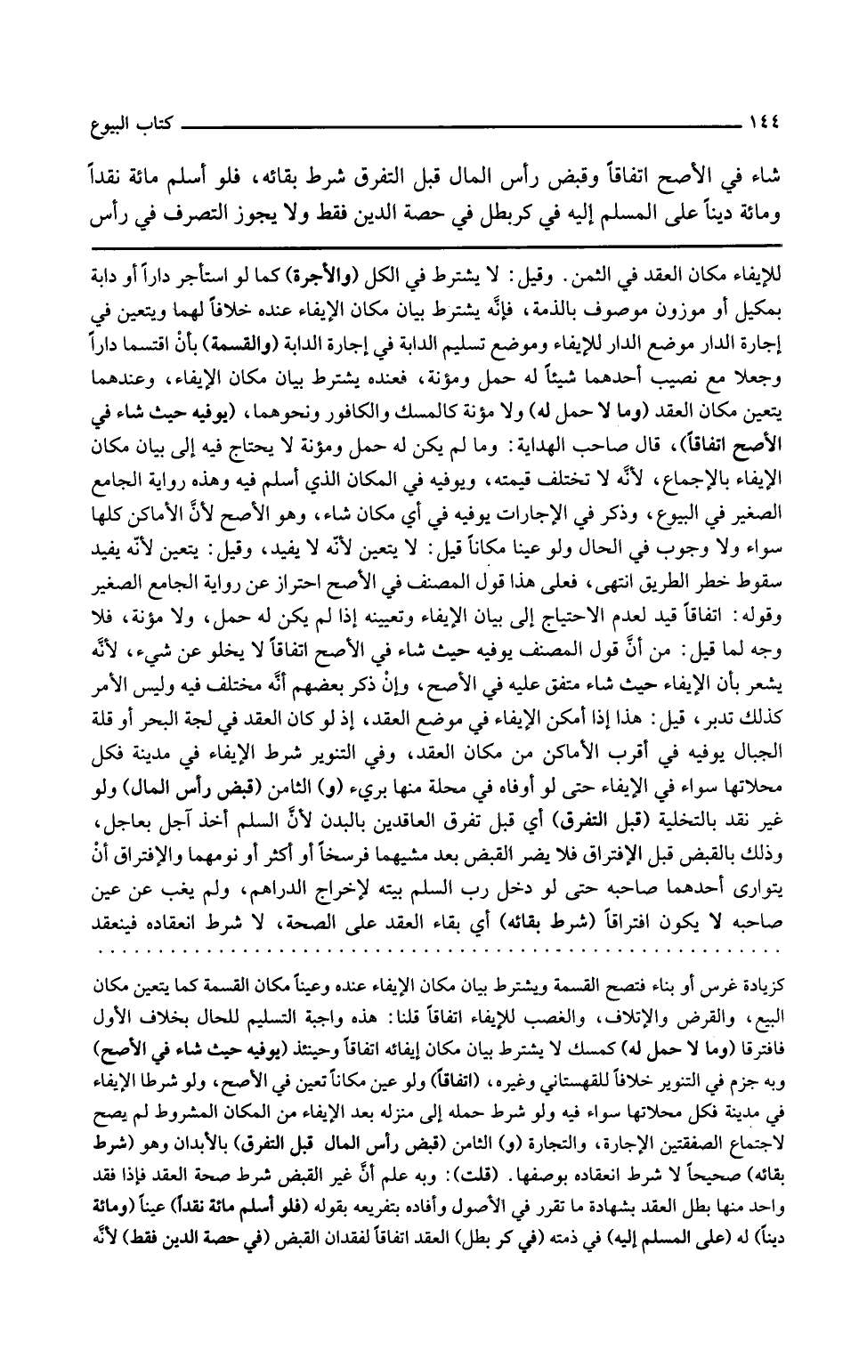 وفي التنوير شرط الإيفاء في مدينة فكل محلاتها سواء في الإيفاء حتى لو أوفاه في محلة منها برئ